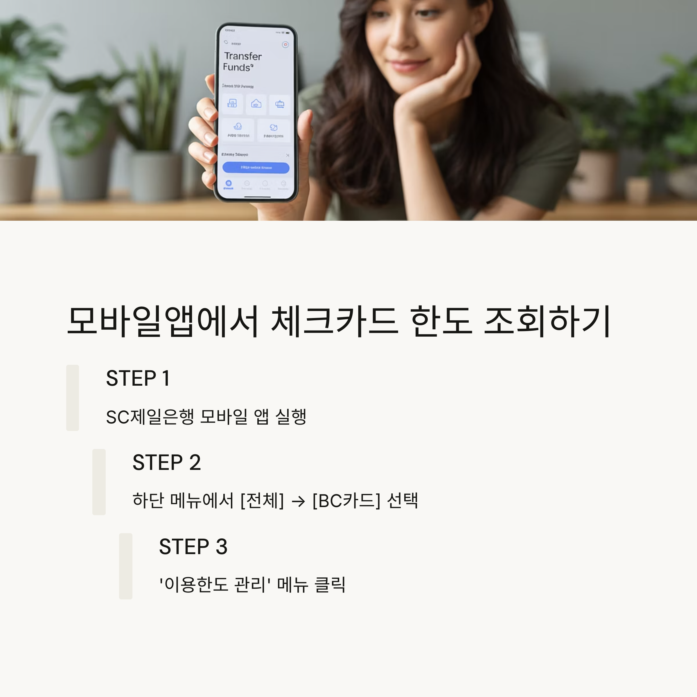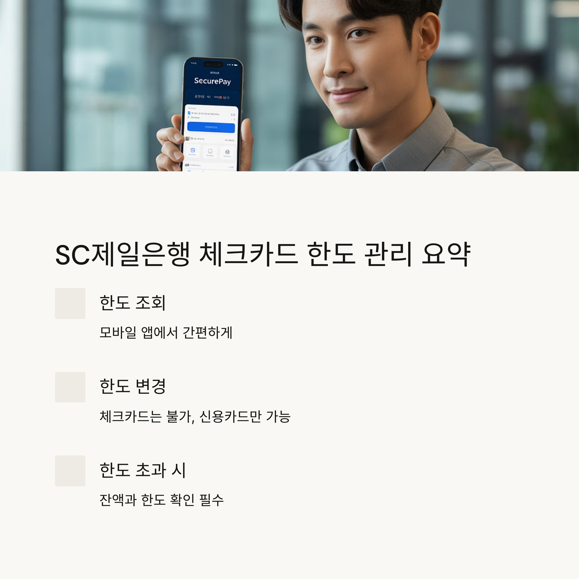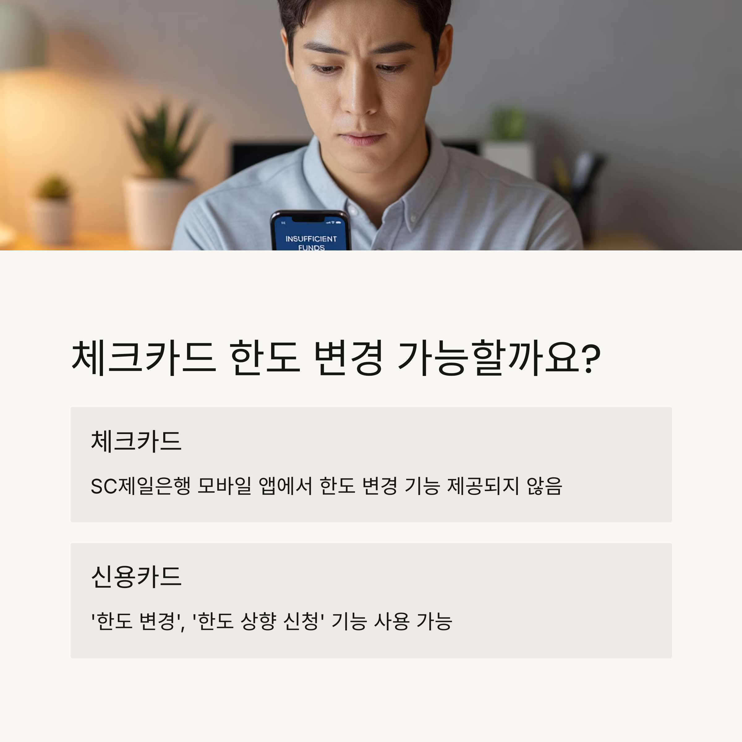 ❌ 체크카드는 SC제일은행 모바일 앱에서는 한도 변경 기능이 제공되지 않습니다.