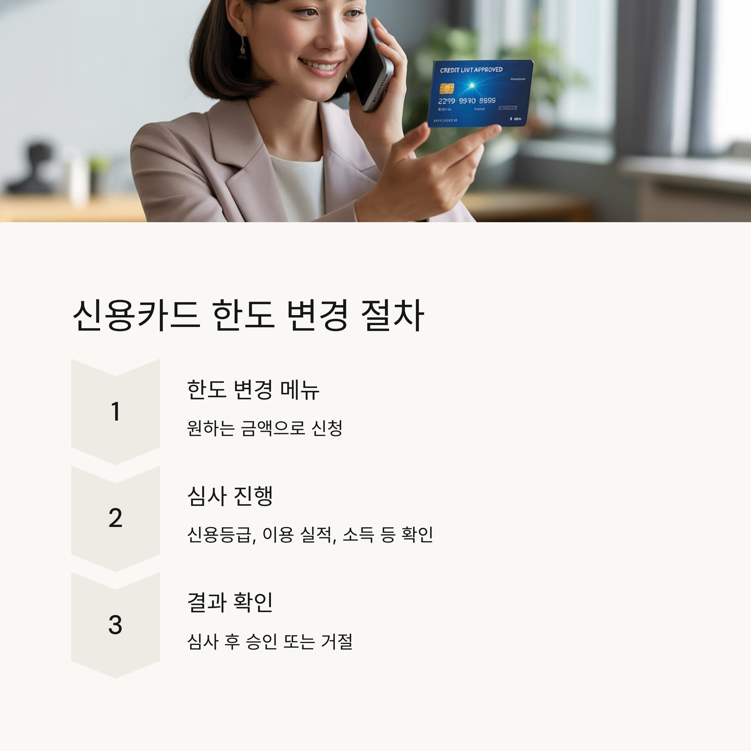 A6. 신용카드 보유자에 한해 한도 상향 신청이 가능하며, 신용도와 이용 실적을 바탕으로 심사가 이뤄집니다.