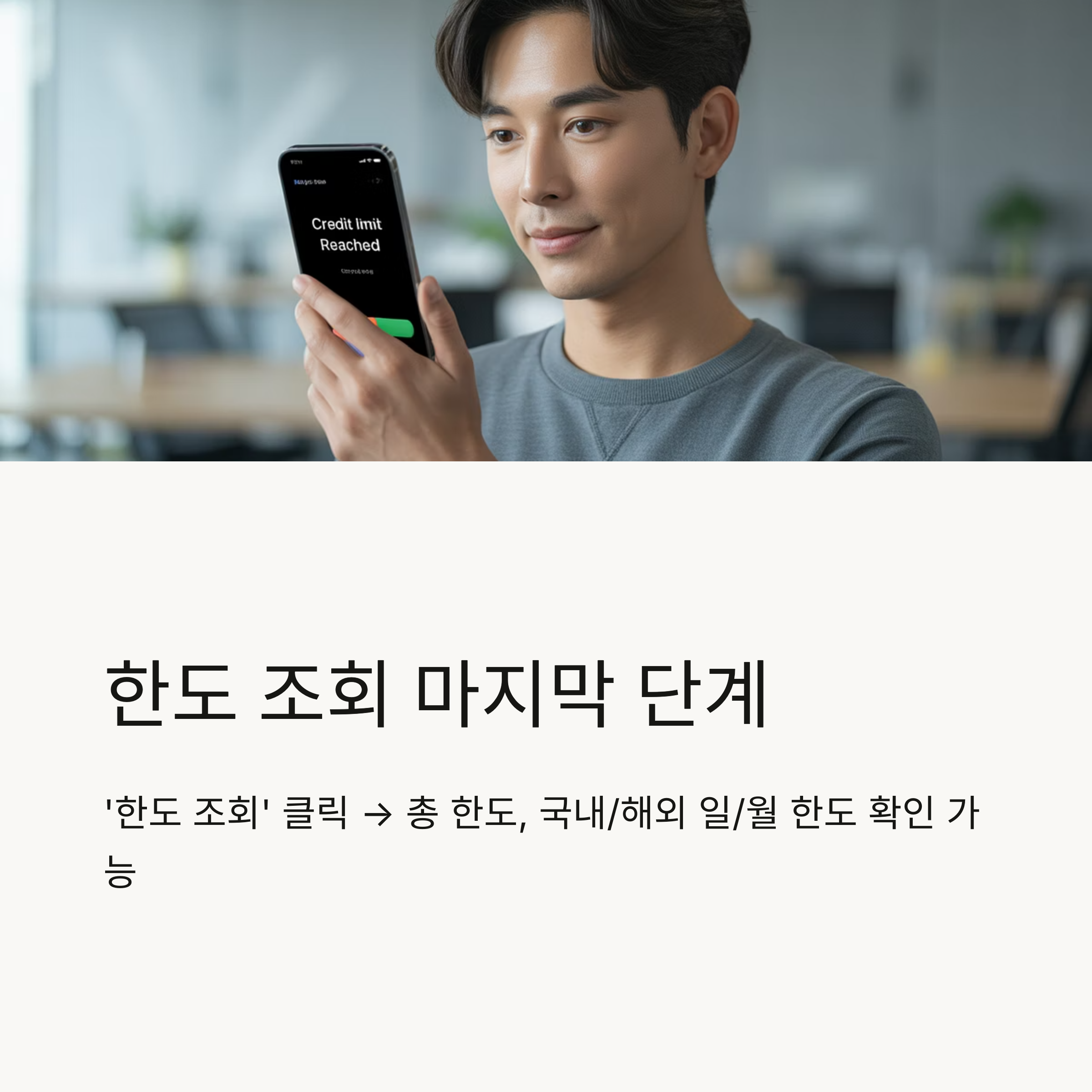 ✅ STEP 4: ‘한도 조회’ 클릭 → 총 한도, 국내/해외 일/월 한도 확인 가능