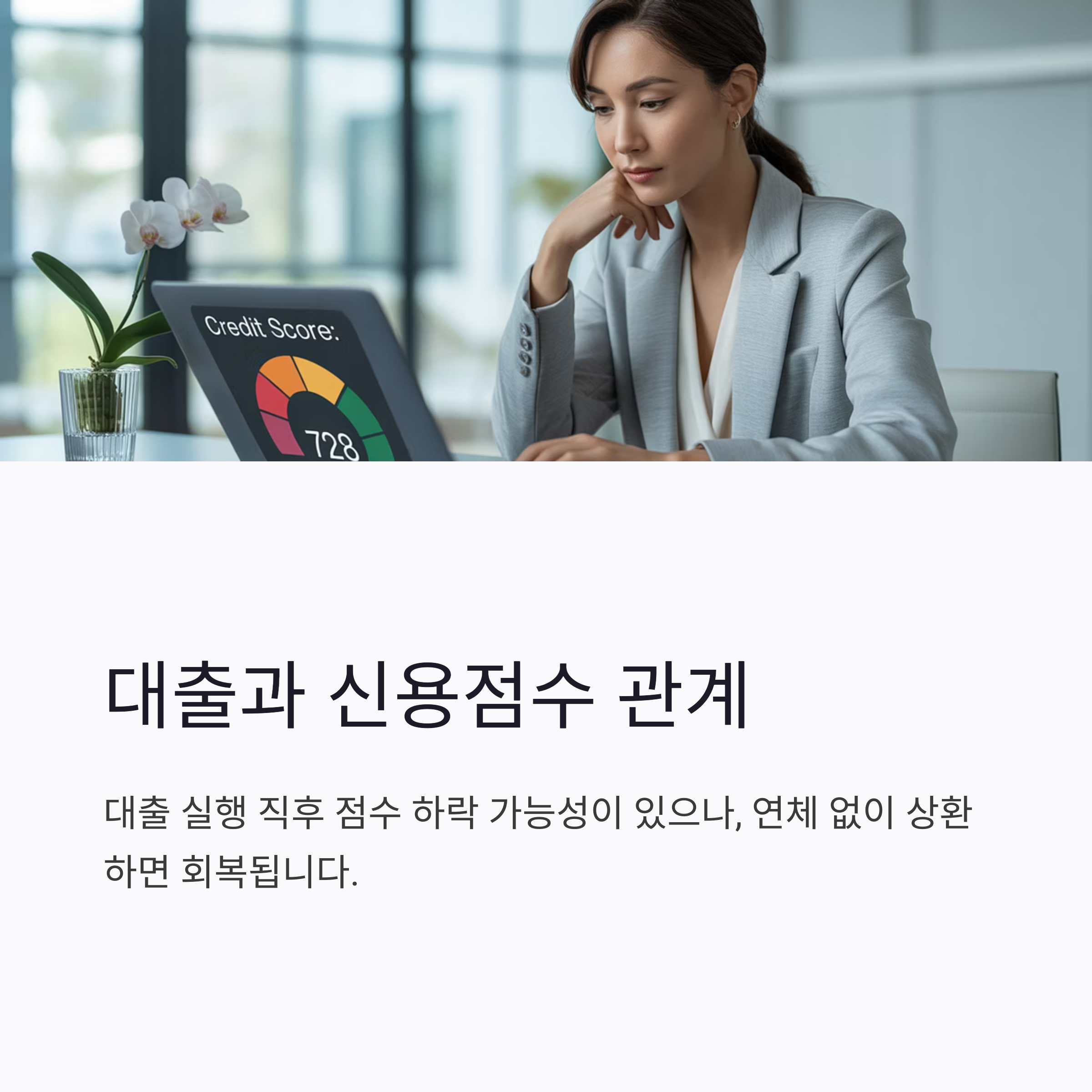 A7. 대출 실행 직후 점수 하락 가능성이 있으나, 연체 없이 상환하면 회복됩니다.