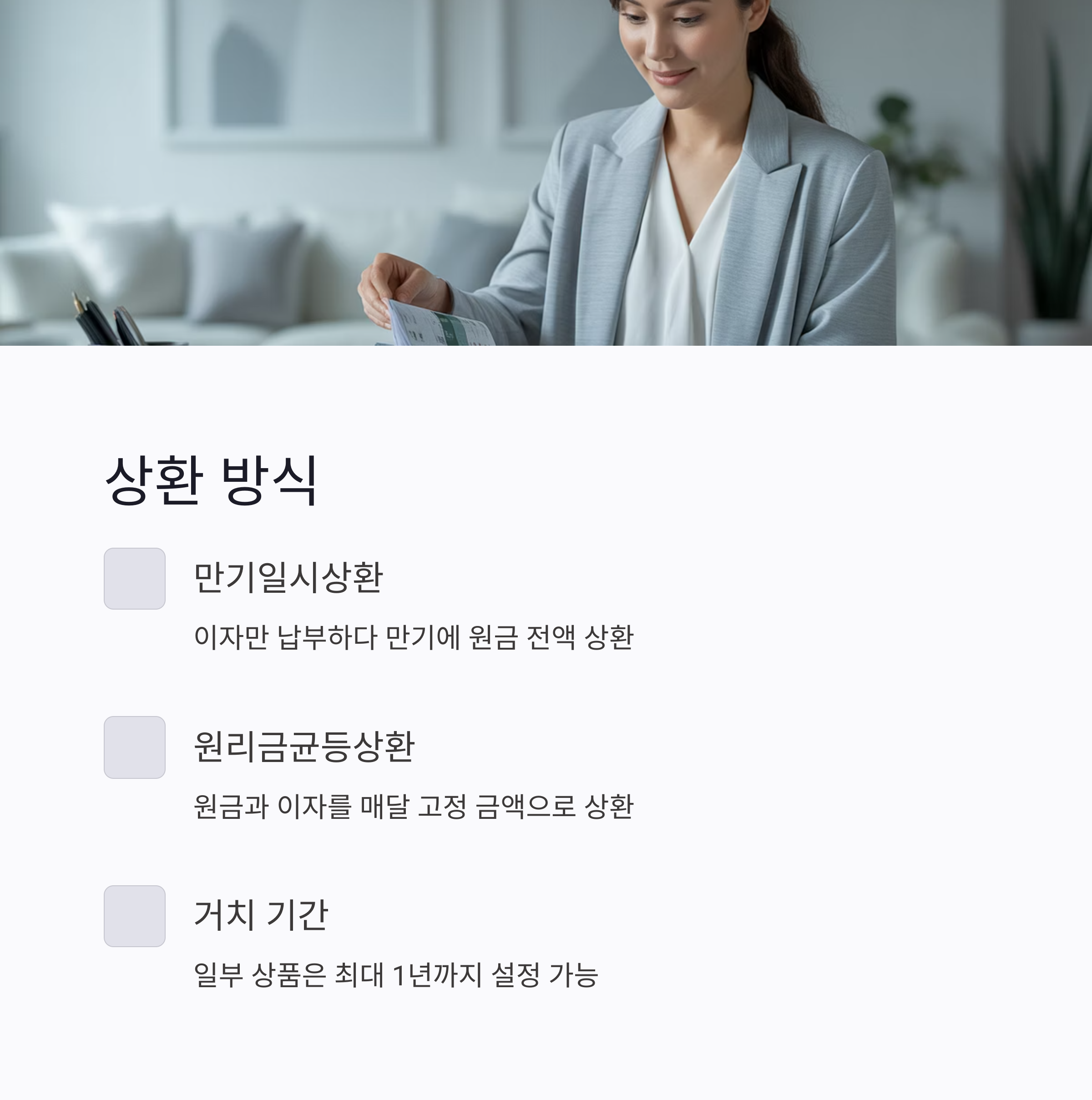 ✅ 거치 기간: 일부 상품은 최대 1년까지 설정 가능
