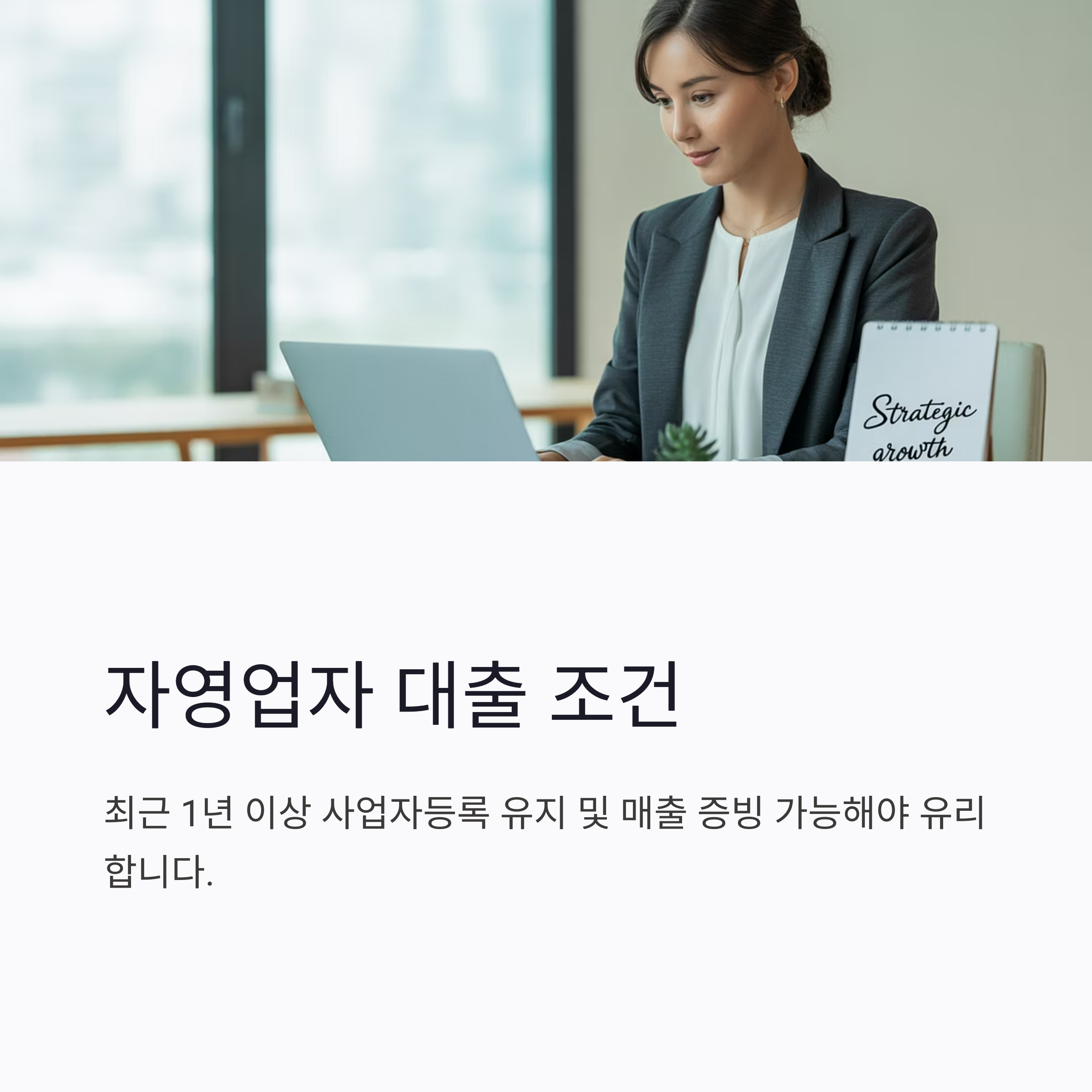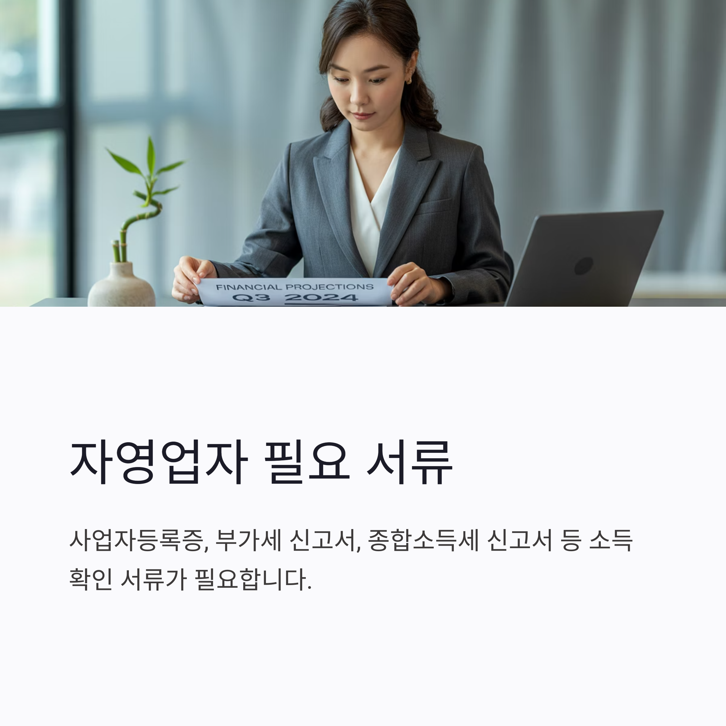 ✅ 자영업자: 최근 1년 이상 사업자등록 유지 및 매출 증빙 가능해야 유리