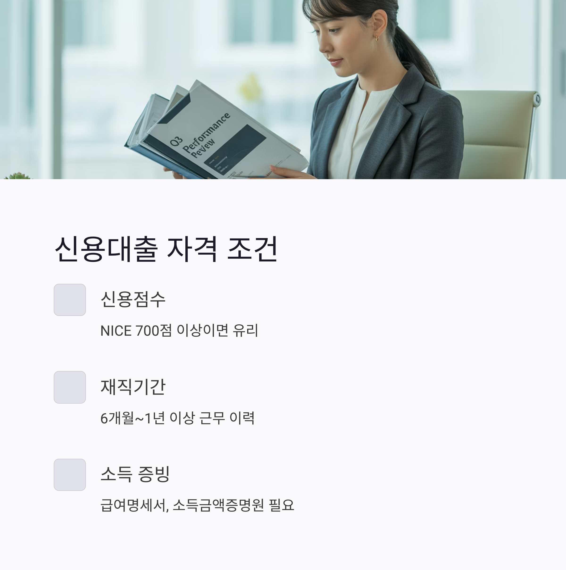 ✅ 신용점수: 일반적으로 NICE 700점 이상이면 유리