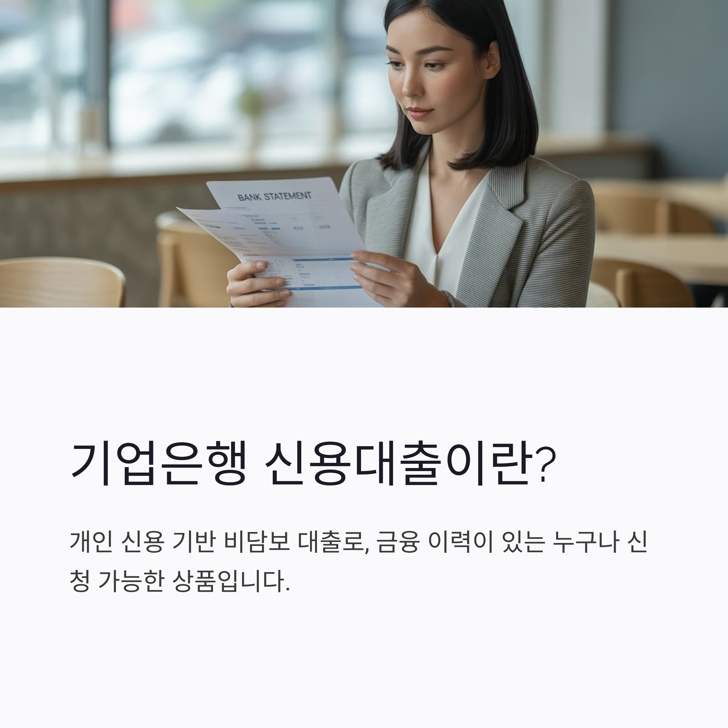 기업은행이 제공하는 개인 신용 기반 비담보 대출 상품으로, 금융 이력이 있는 누구나 신청할 수 있는
