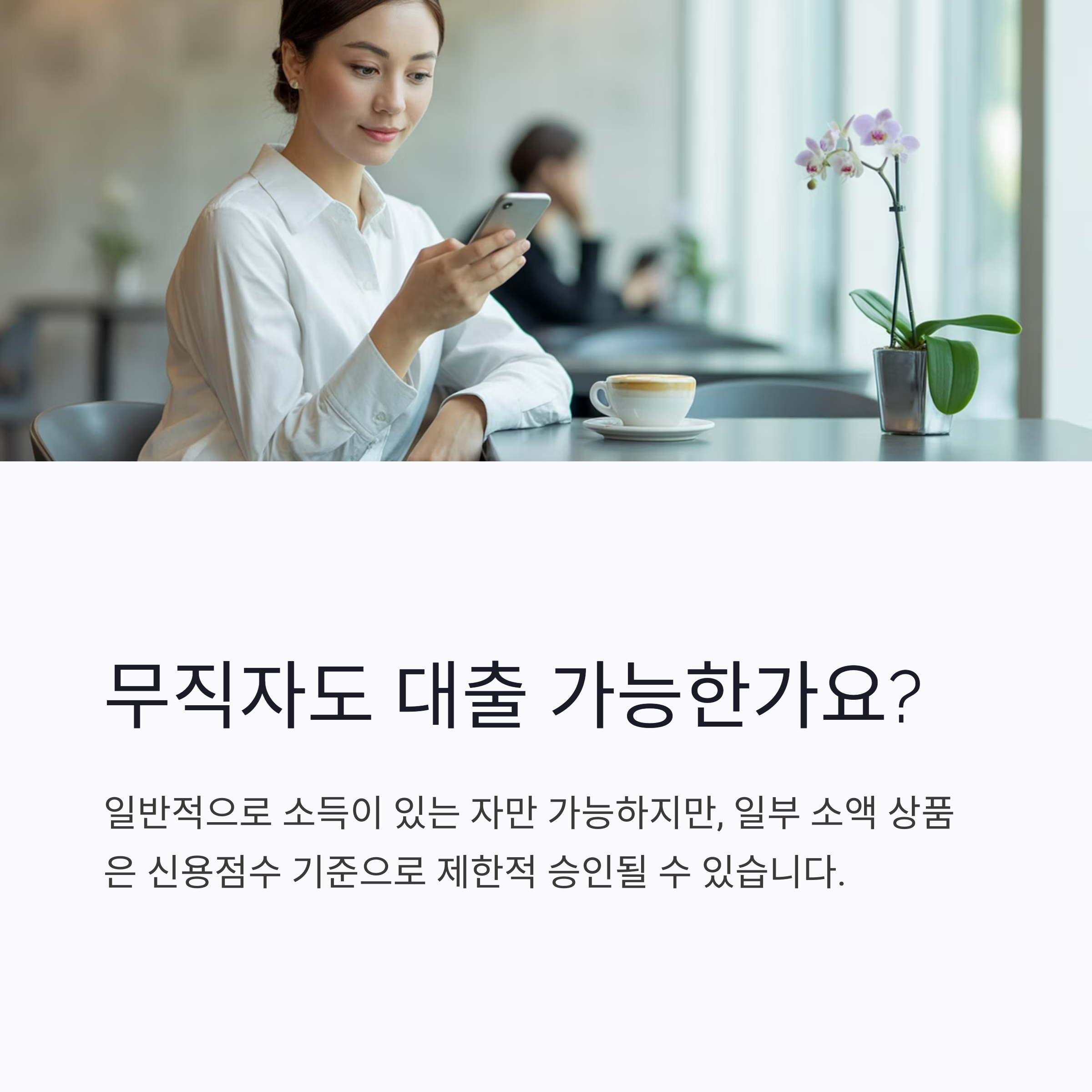 A1. 일반적으로 소득이 있는 자만 가능하지만, 일부 소액 상품은 신용점수 기준으로