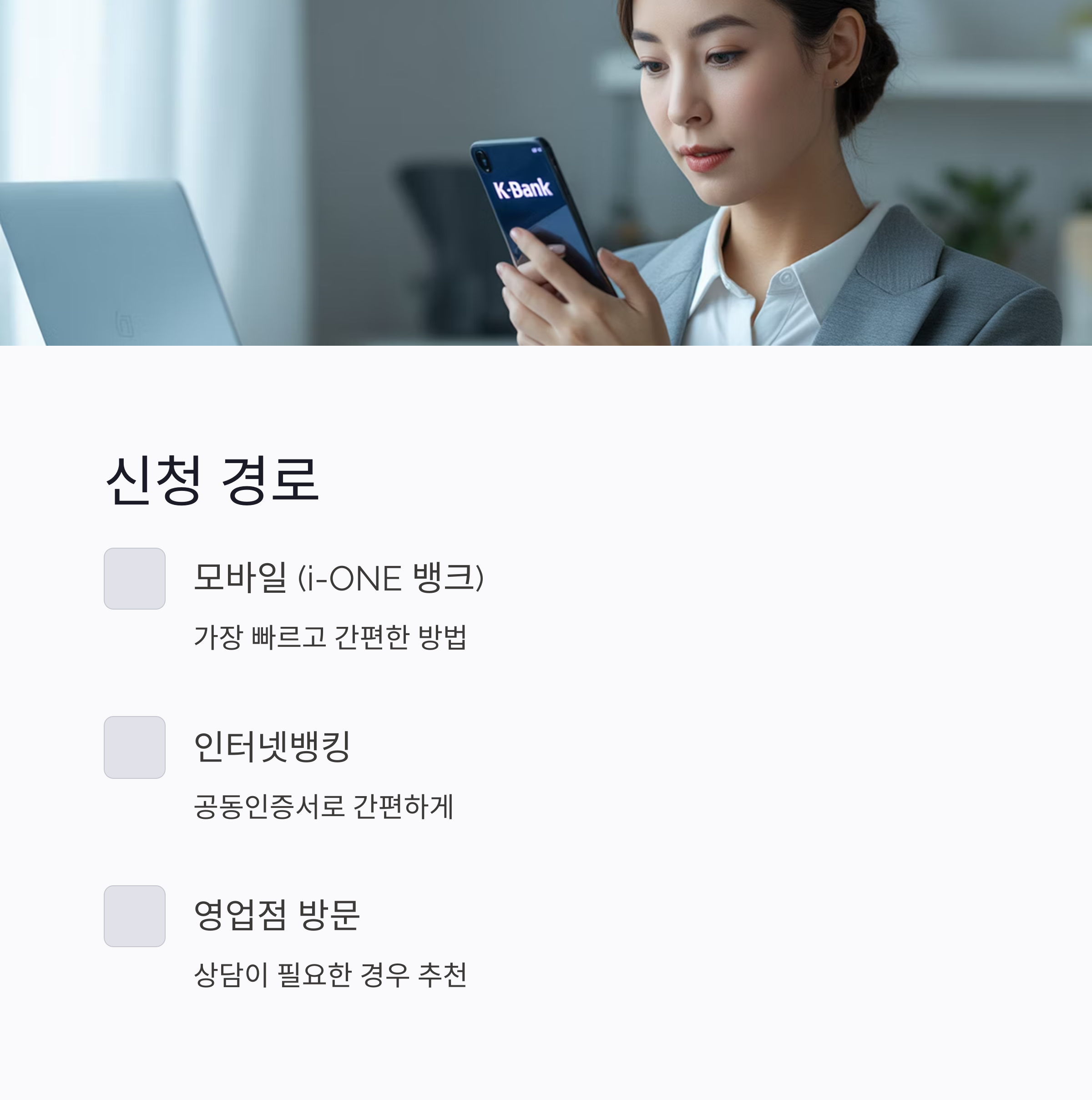 ✔ 신청 경로: 모바일(i-ONE 뱅크), 인터넷, 영업점 모두 가능