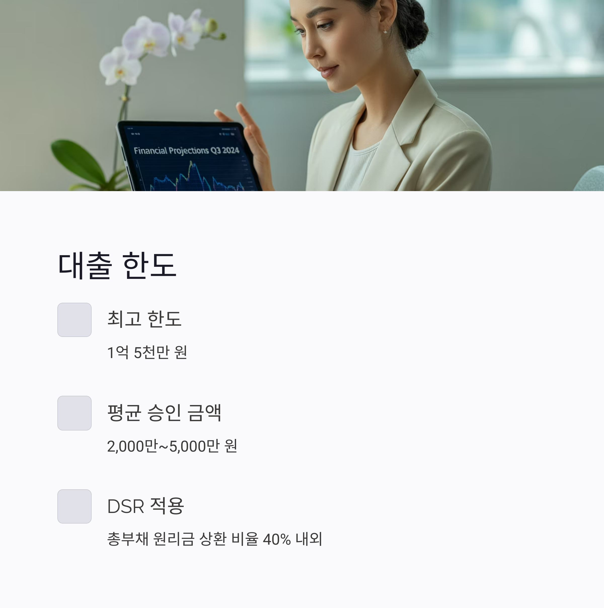 📌 DSR(총부채원리금상환비율) 규제로 인해 타 금융기관 대출 보유 시 승인 거절 가능