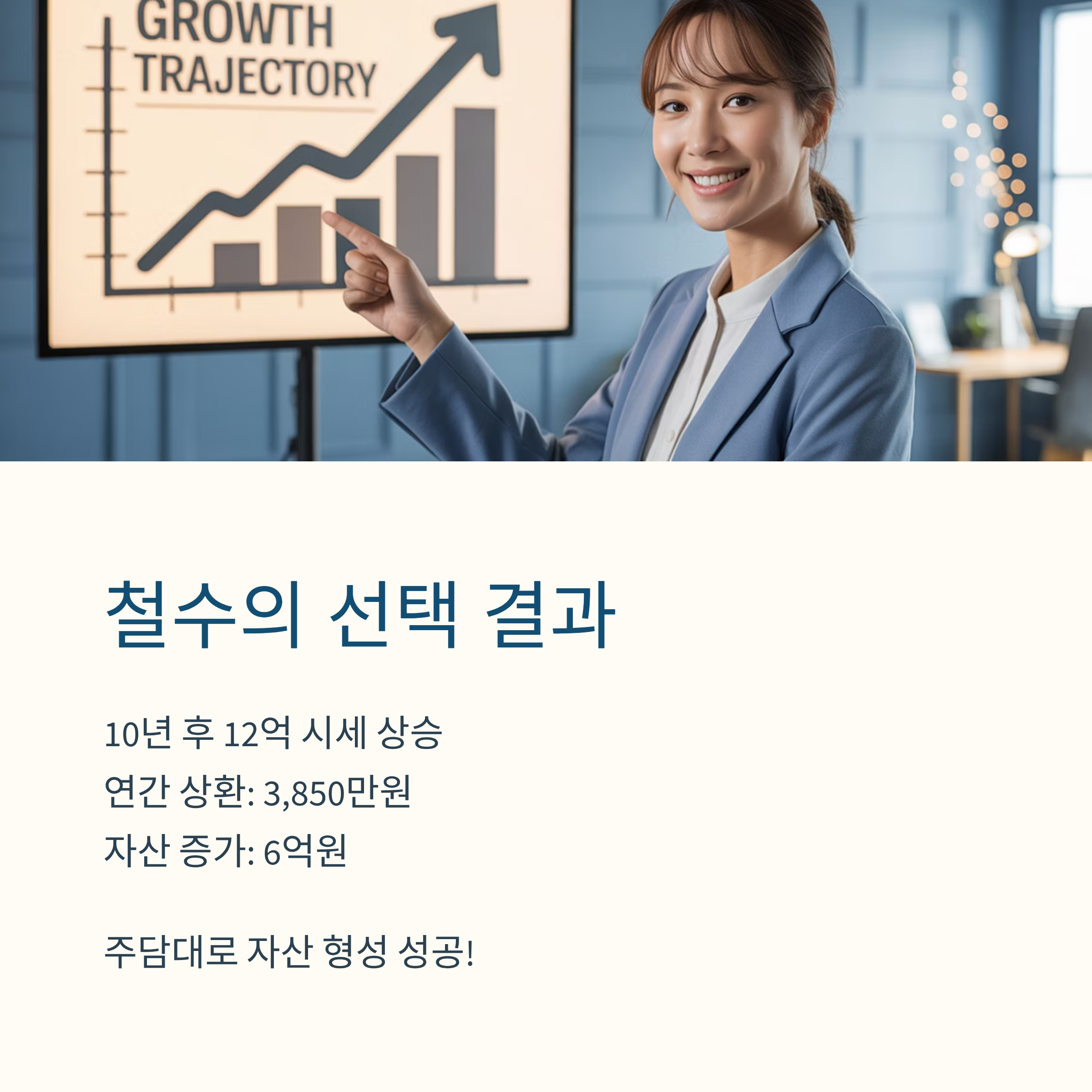 - 10년 후 매입 시 12억 아파트 → 대출금 5.1억 발생