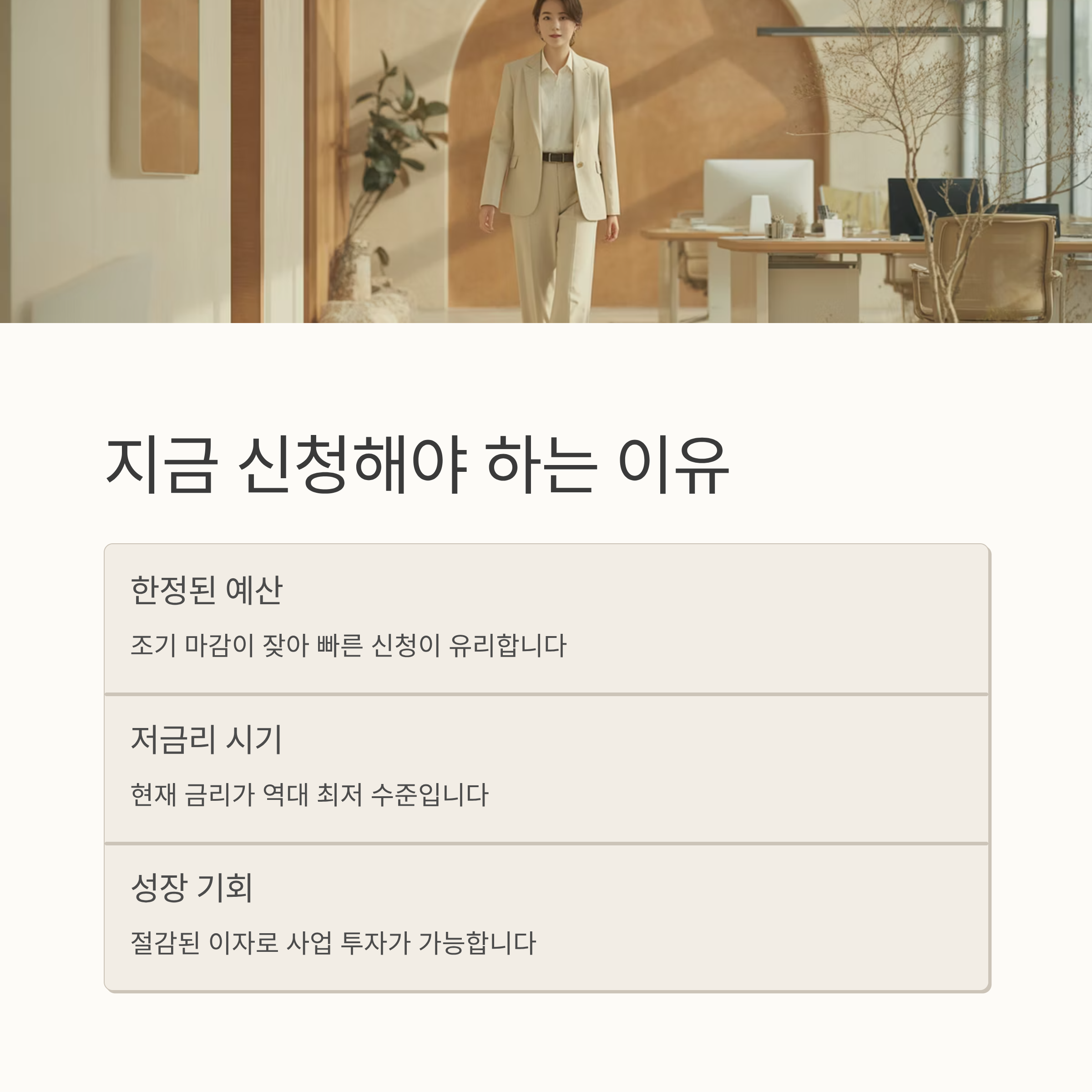 👉 지금이 바로 사업 자금 걱정을 줄이고, 성장의 기회를 잡을 때입니다.