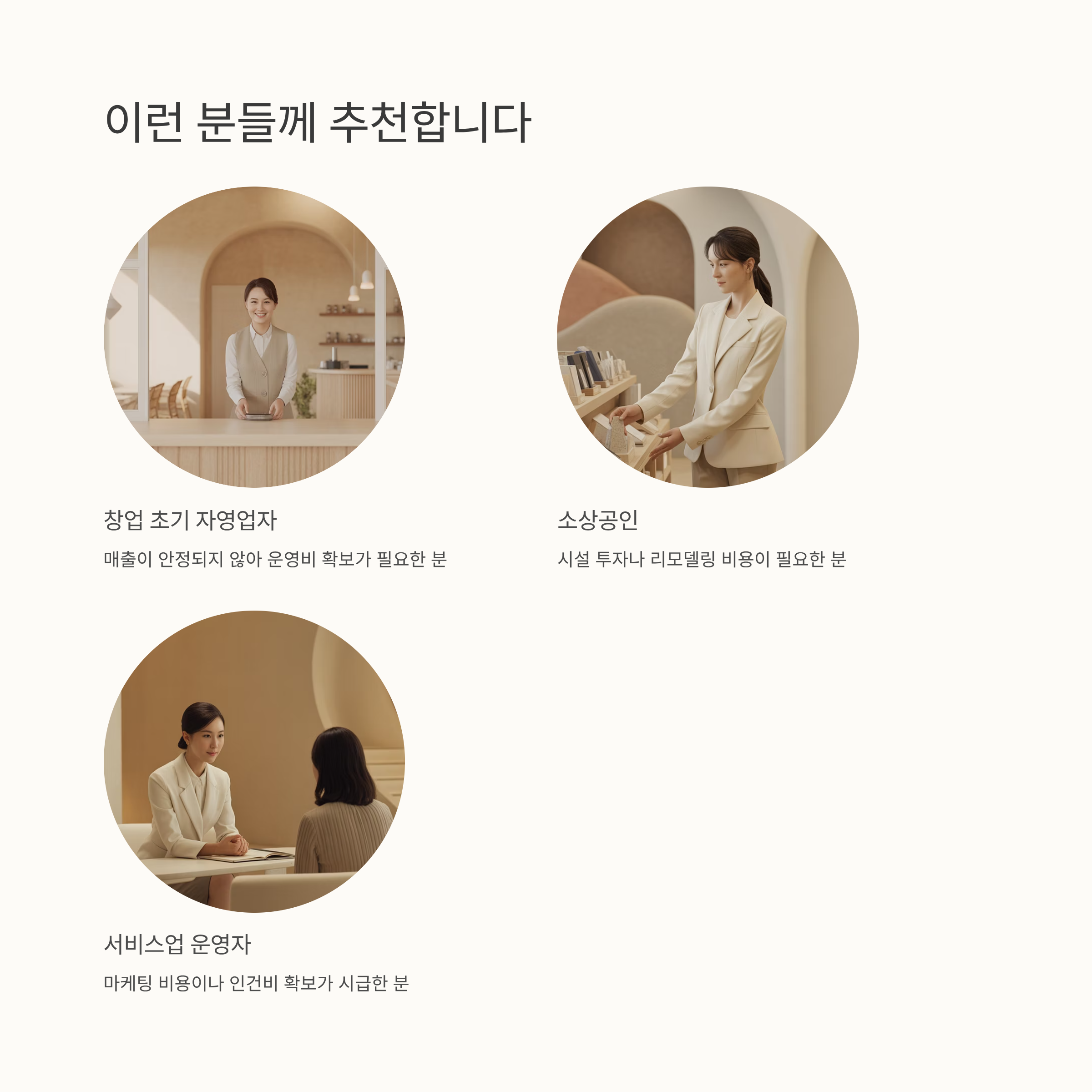 ✔ 저신용자, 창업 초기 사업자도 대상에 포함되어 기회의 문이 넓습니다.
