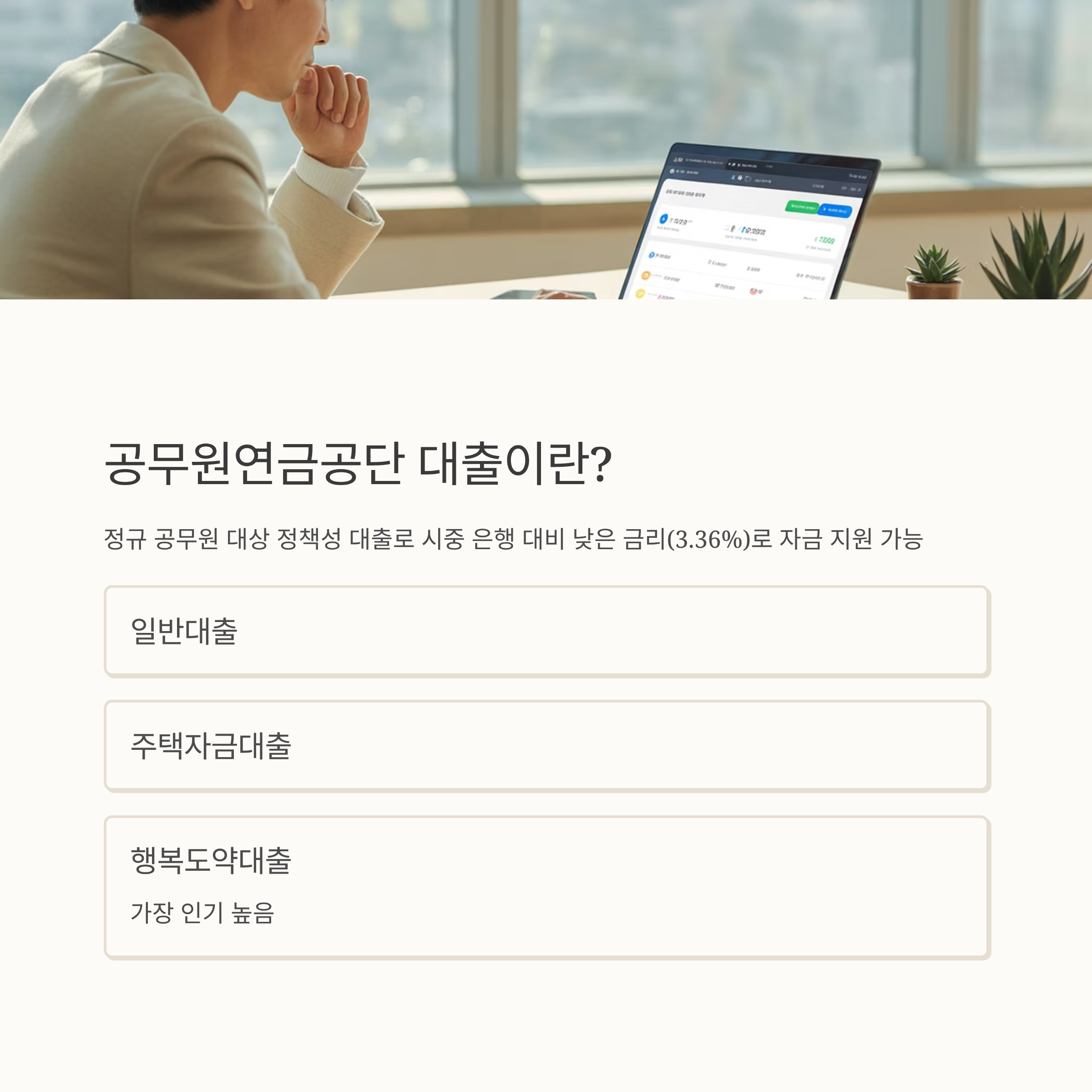 2025년 현재 공무원이라면 꼭 알아야 할 대출 제도가 있습니다. 바로 공무원연금공단의 대부제도(행복도약대출 포함)