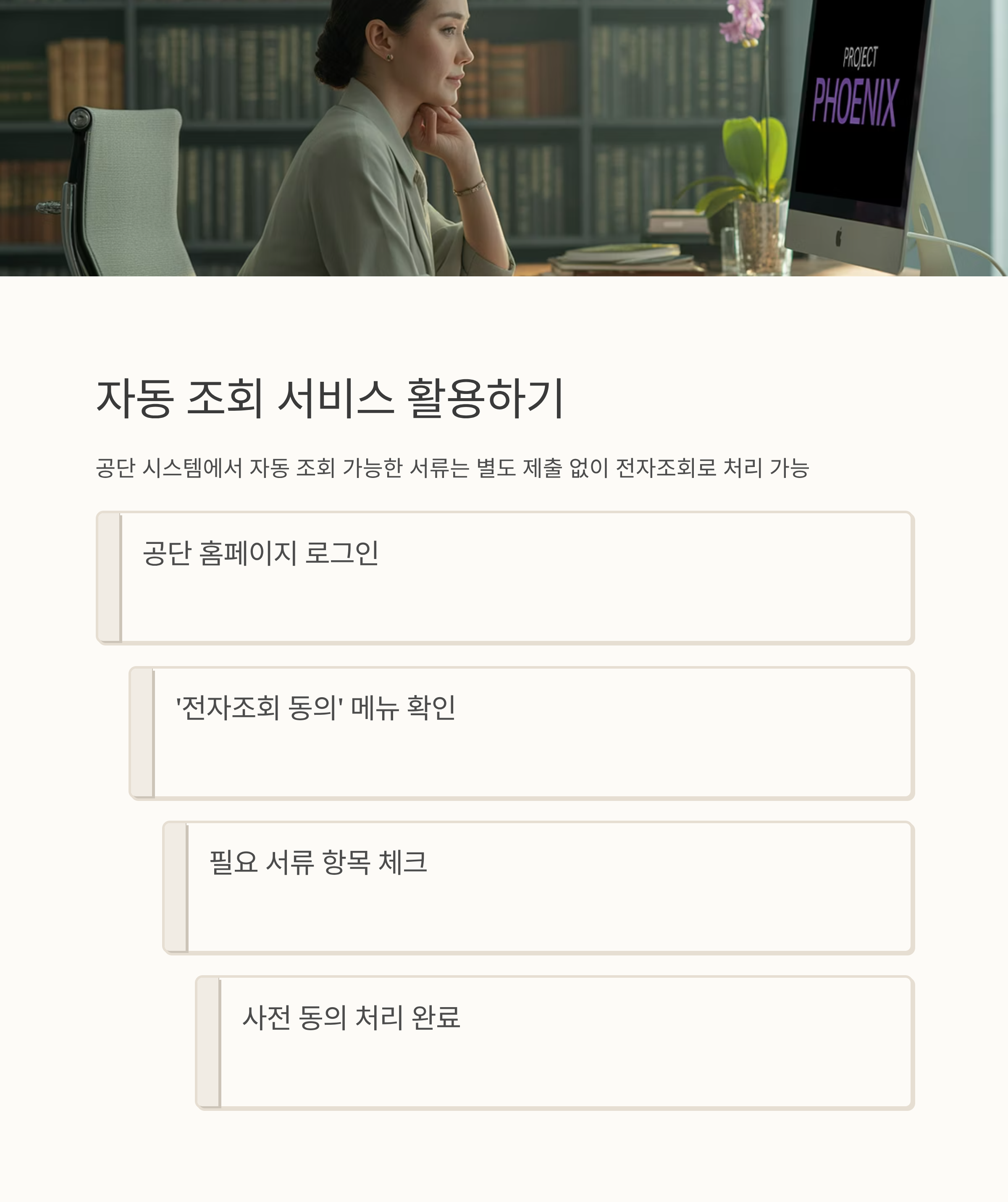 공단 시스템에서 자동 조회 가능한 서류는 별도 제출 없이 전자조회로 처리 가능합니다.