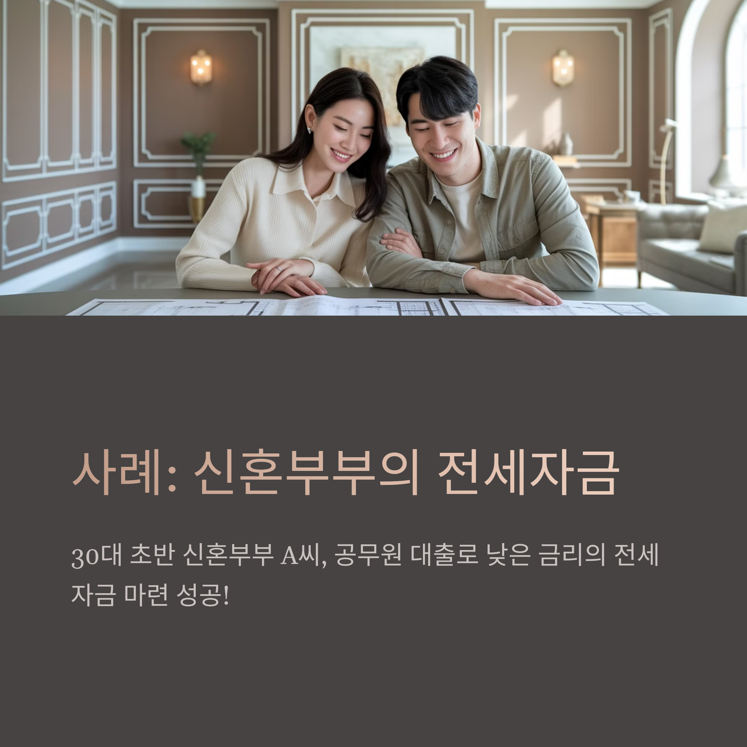 - 공무원 대출을 활용하여 낮은 금리로 전세자금 대출을 받아 안정적인 주거지를 마련할 수 있었습니다.
