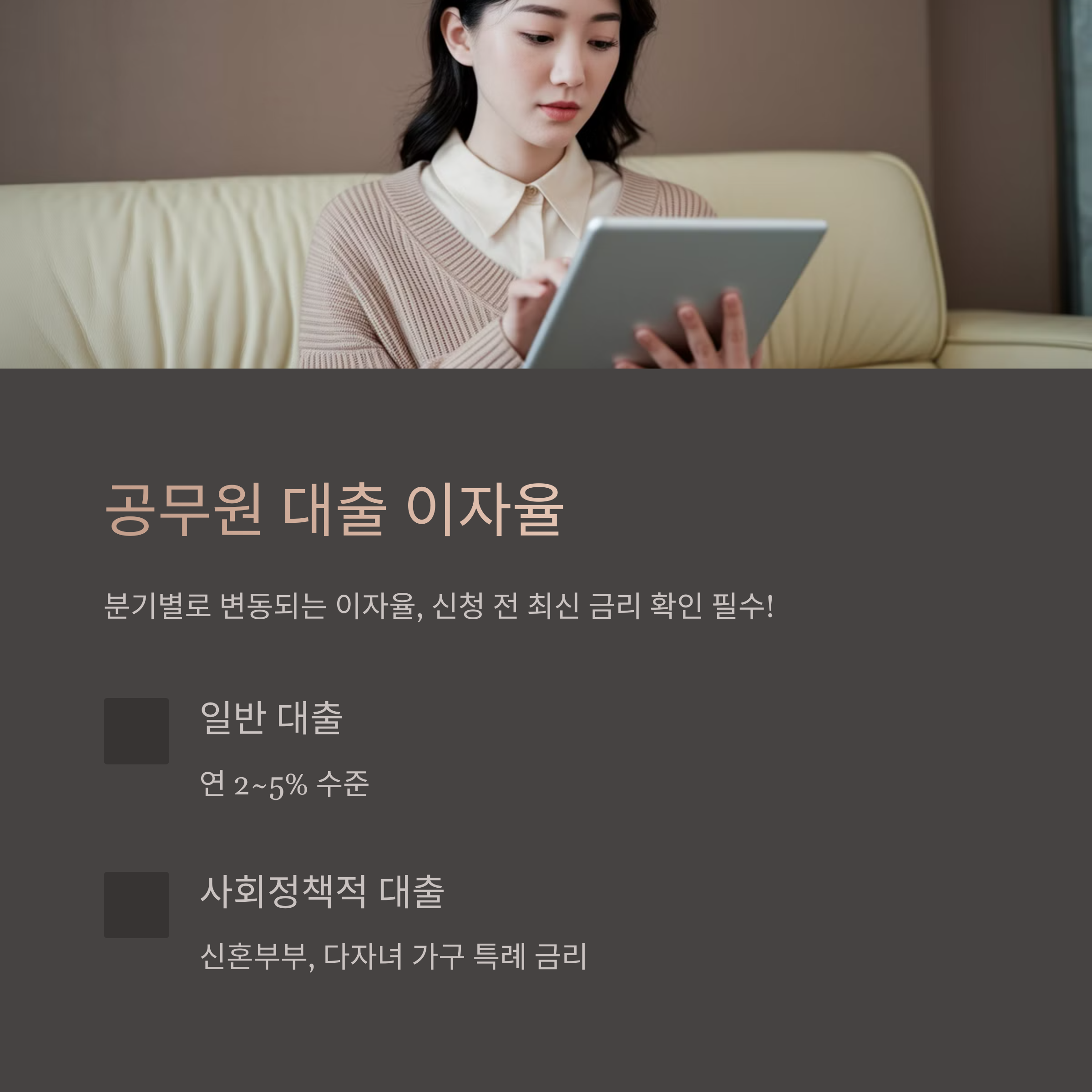 공무원 대출의 이자율은 분기별로 변동되므로 대출 신청 전 반드시 최신 금리를 확인해야 합니다.