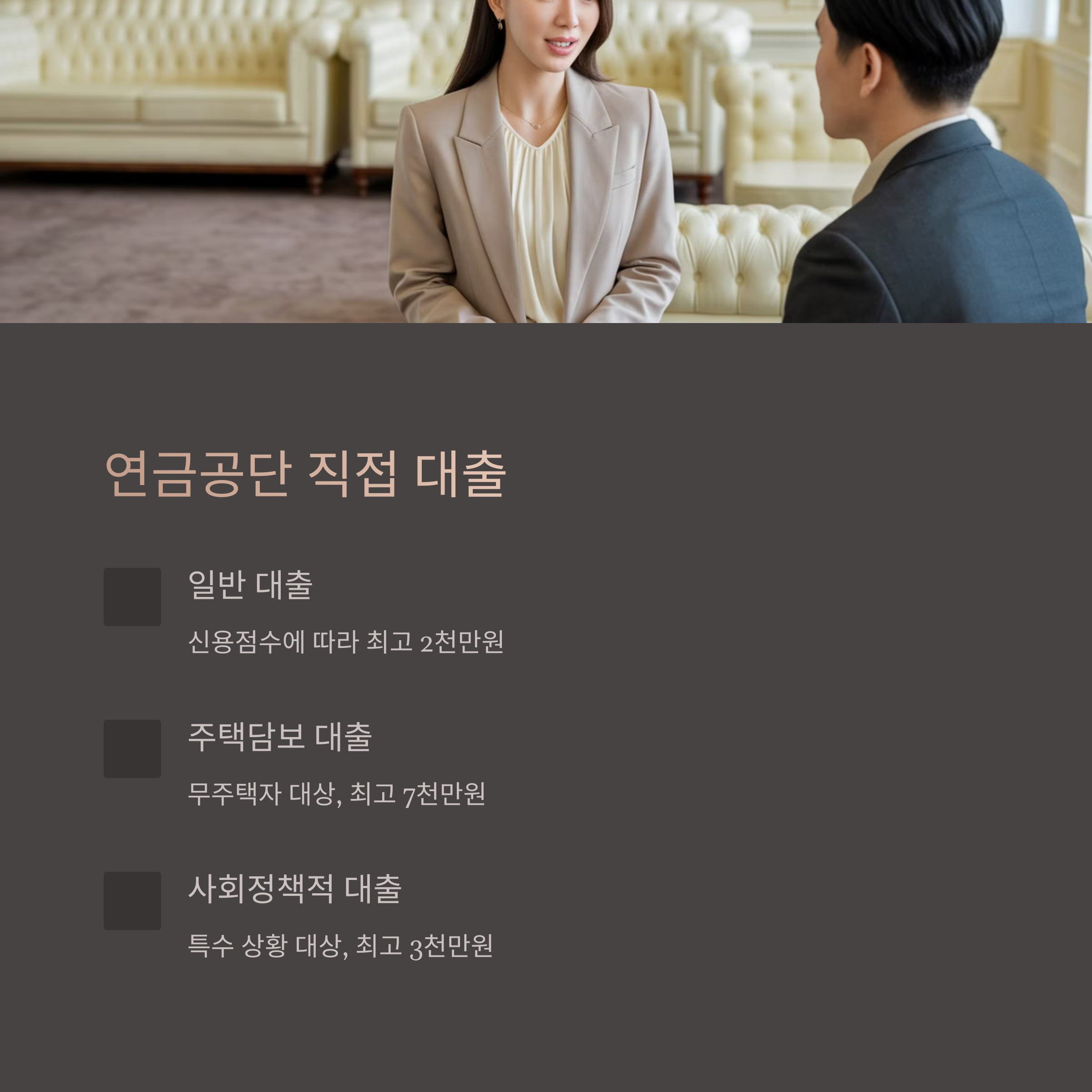 ✔ 특징: 퇴직금을 담보로 제공하여 안정적인 대출 가능