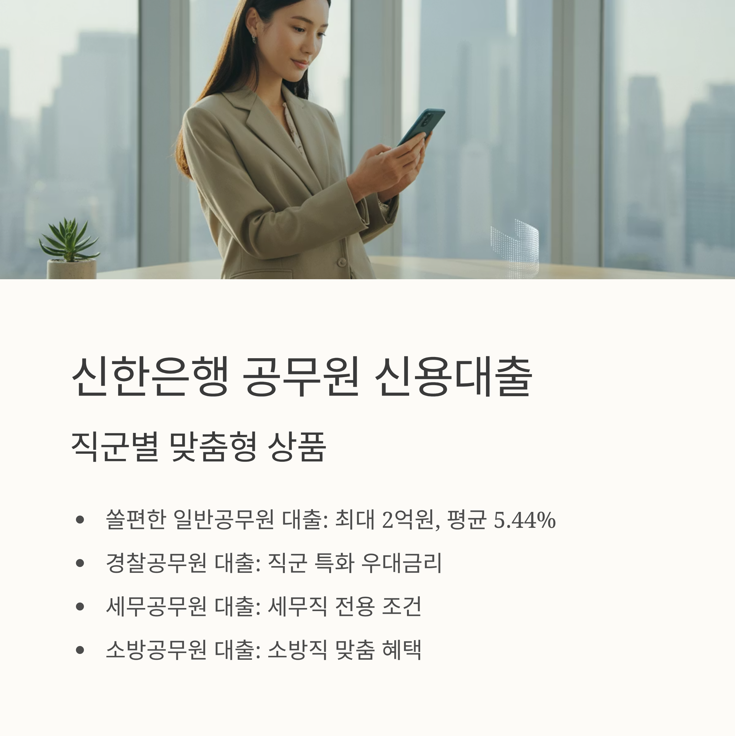 신한은행은 공무원 직군별로 세분화된 대출 상품을 제공합니다.
