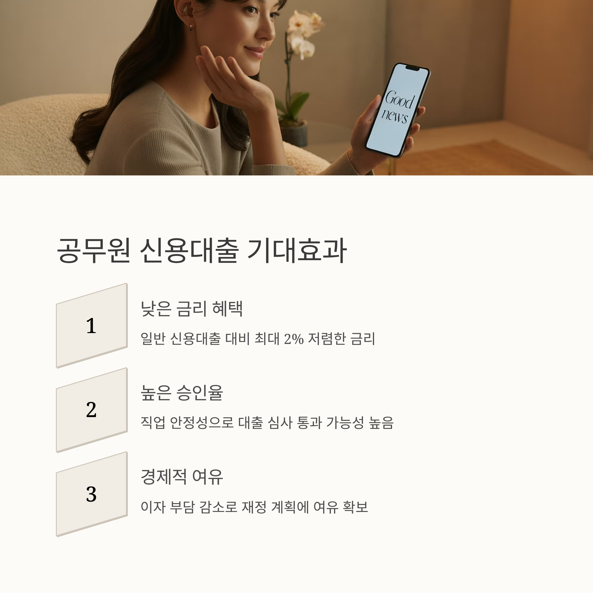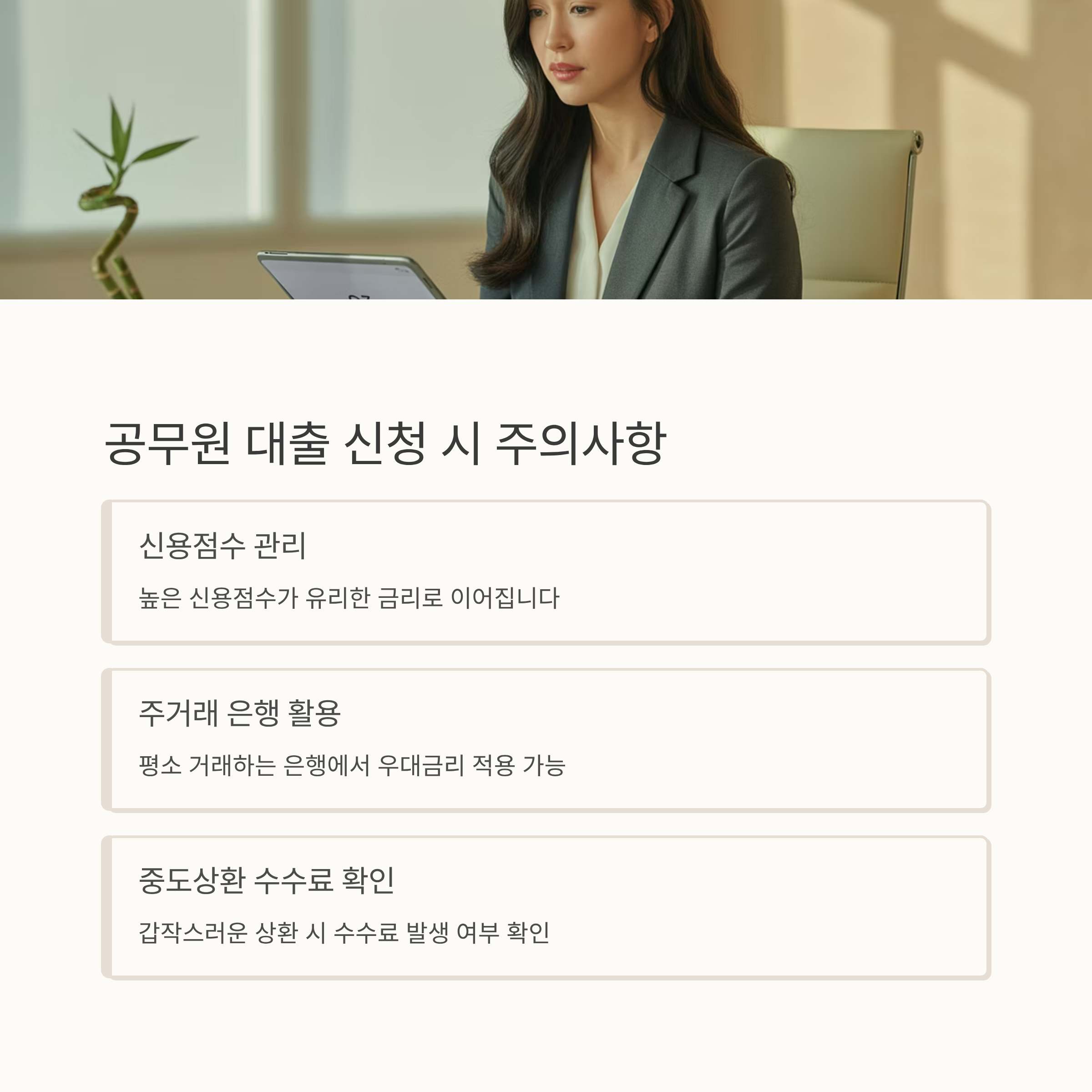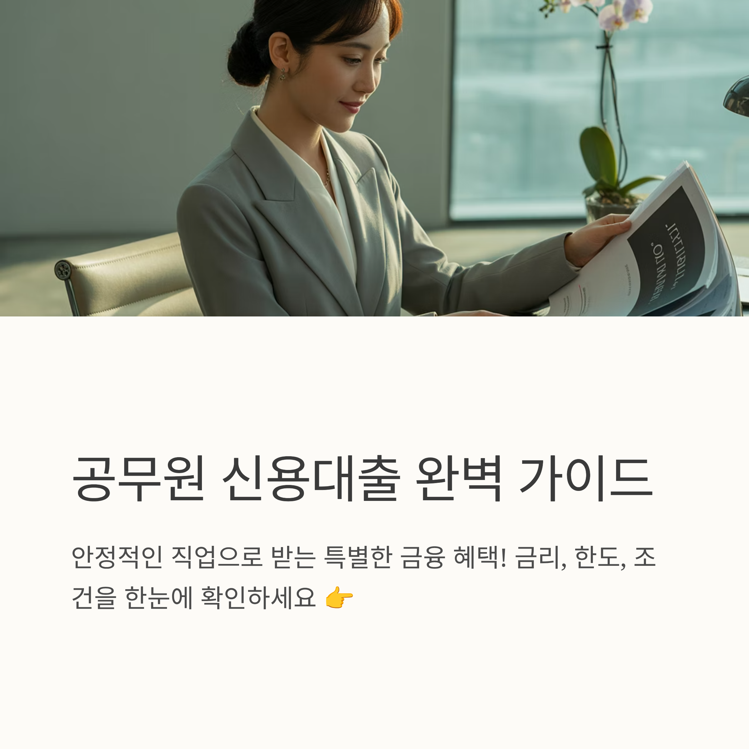 공무원이라면 신용등급, 직업 안정성, 거래 이력을 바탕으로 유리한 조건으로 대출을 받을 수 있습니다.