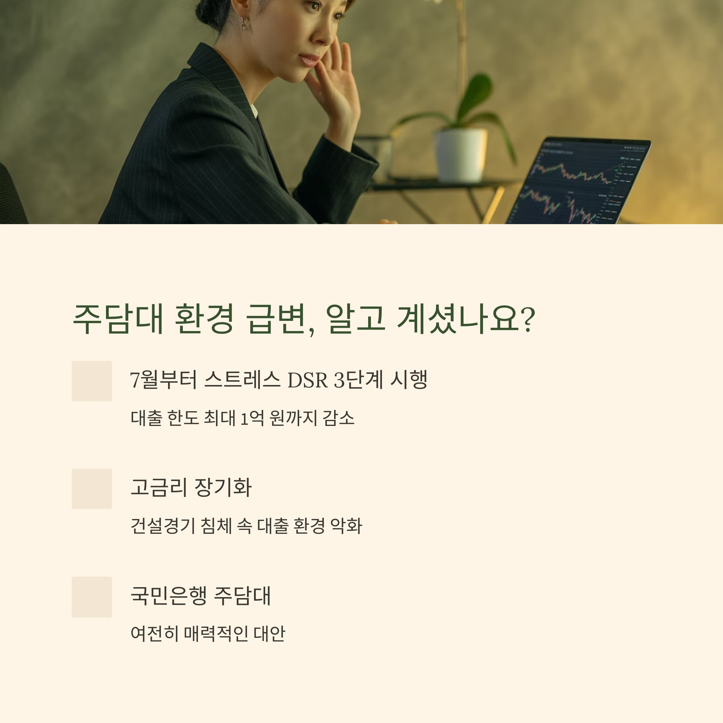 2025년 들어 주택담보대출(주담대)을 둘러싼 금융환경이 급변하고 있습니다. 특히 7월부터는 스트레스 DSR 3단계가 시행되며 대출 한도가 최대 1억 원까지 줄어드는 상황입니다. 고금리 장기화와 건설경기 침체 속에서, 국민은행의 주담대 상품은 여전히 매력적인 대안이 될 수 있습니다. 국민은행 주택담보대출의 조건, 금리, 상환방식, 자격요건부터 대안까지, 지금 꼭 알아야 할 정보를 깊이 있게 다뤄보겠습니다.