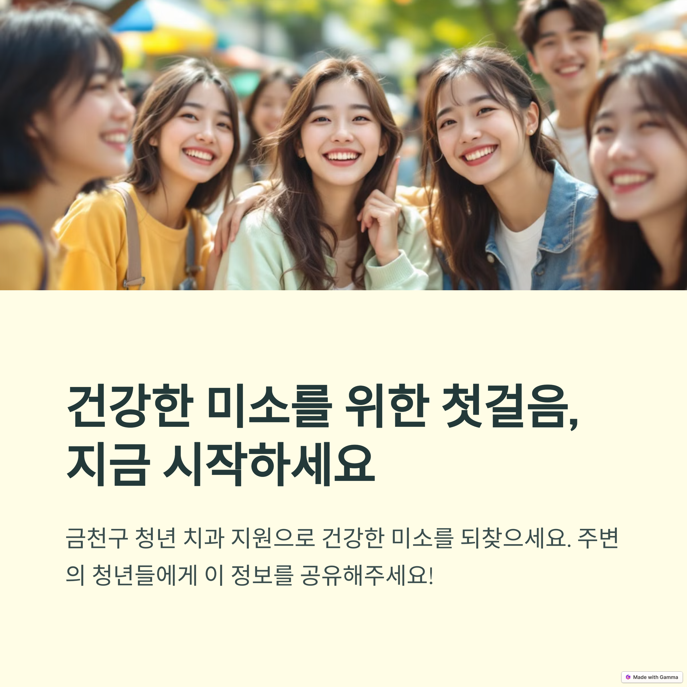 금천구에서 지역 내 거주하는 청년들의 구강 건강을 돕기 위해 마련된 지원 프로그램입니다.