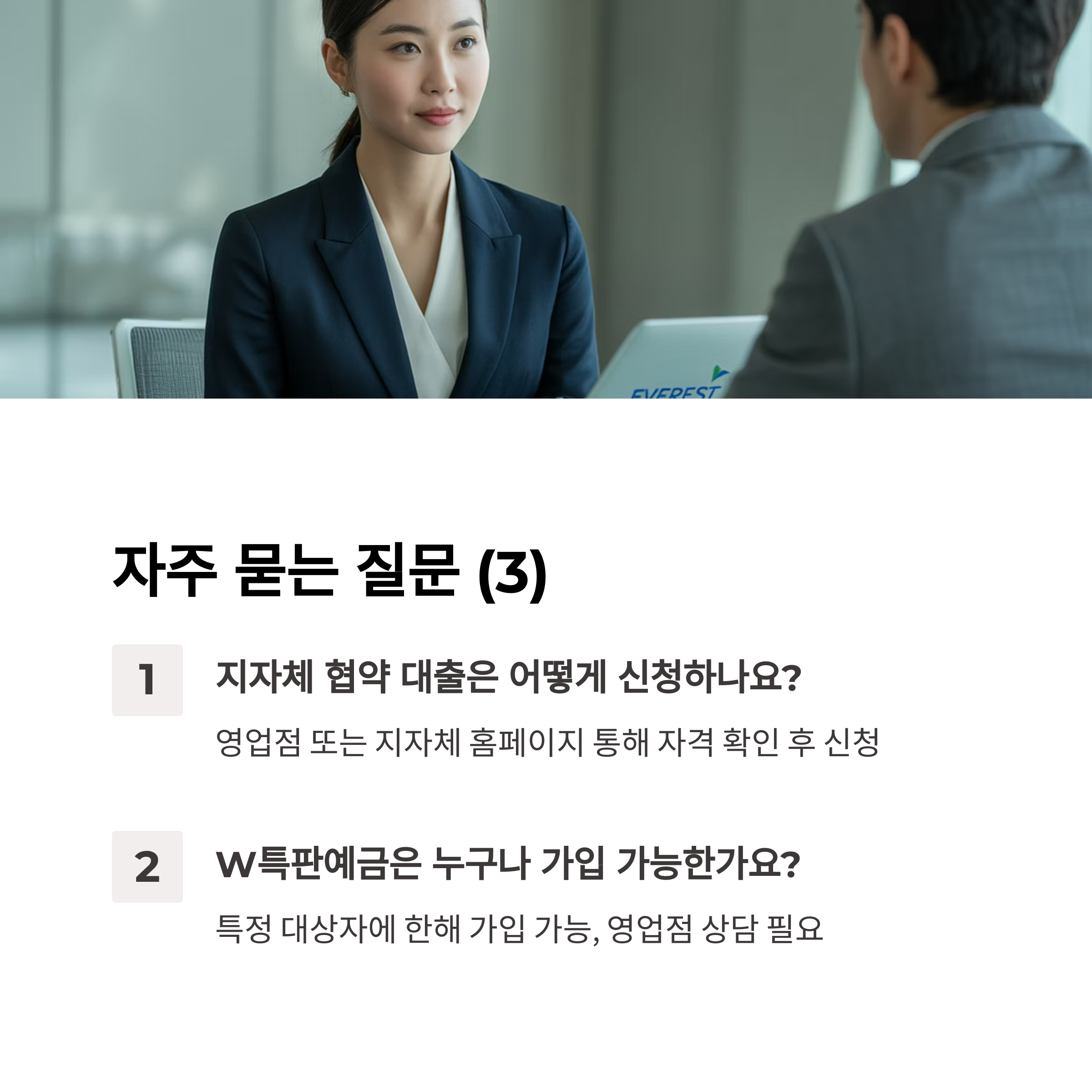 ✔ 예금 연계: 최대 5억 원까지 W특판예금 가입 가능