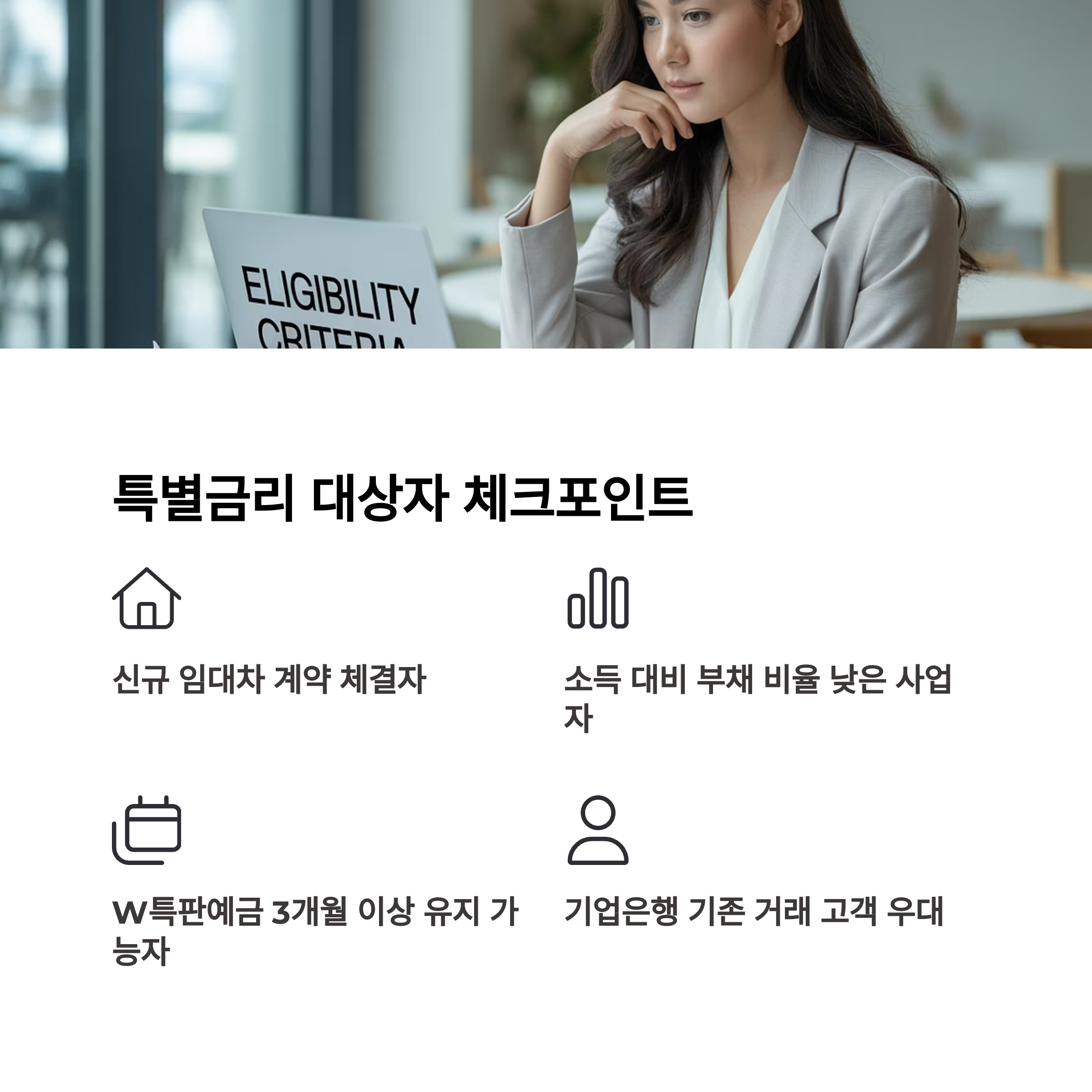 IBK기업은행은 W특판예금 가입자를 대상으로 최대 연 2.29%의 우대금리를 제공하는 사업자대출을 운용 중입니다.