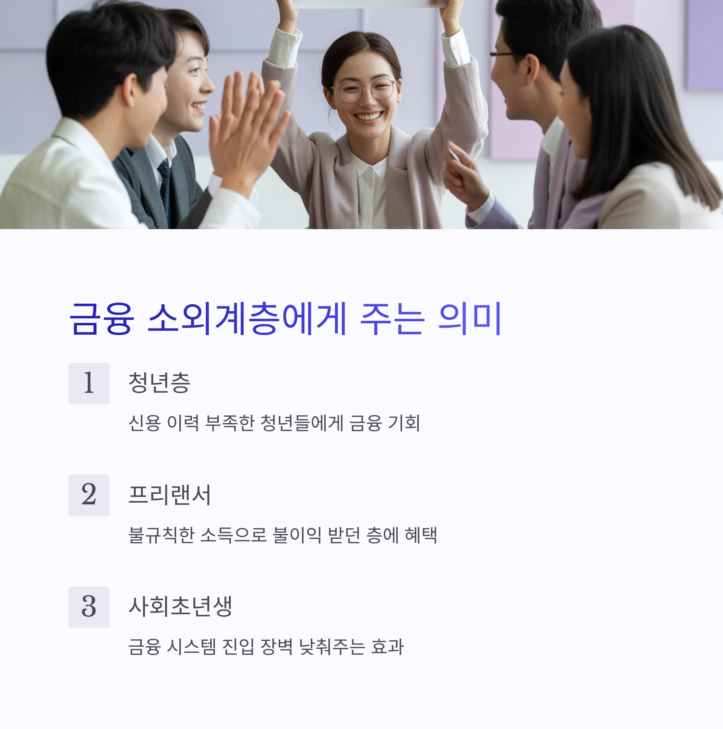 ✅ 특히 저신용자, 청년, 사회초년생에게 금융 접근성을 확대하는 중요한 역할을 하고 있습니다.