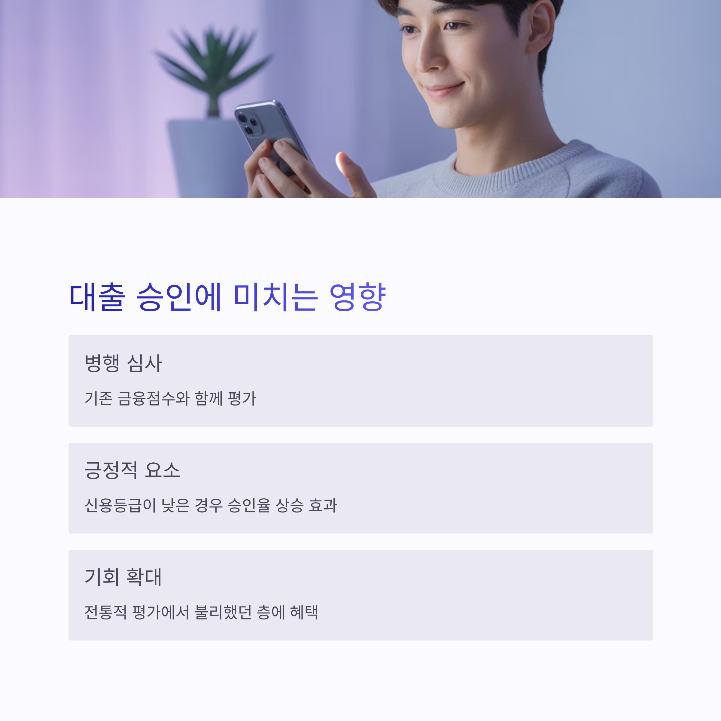 ✔ 기존 신용평가에서 배제된 사회초년생, 금융이력 부족자에게 유리