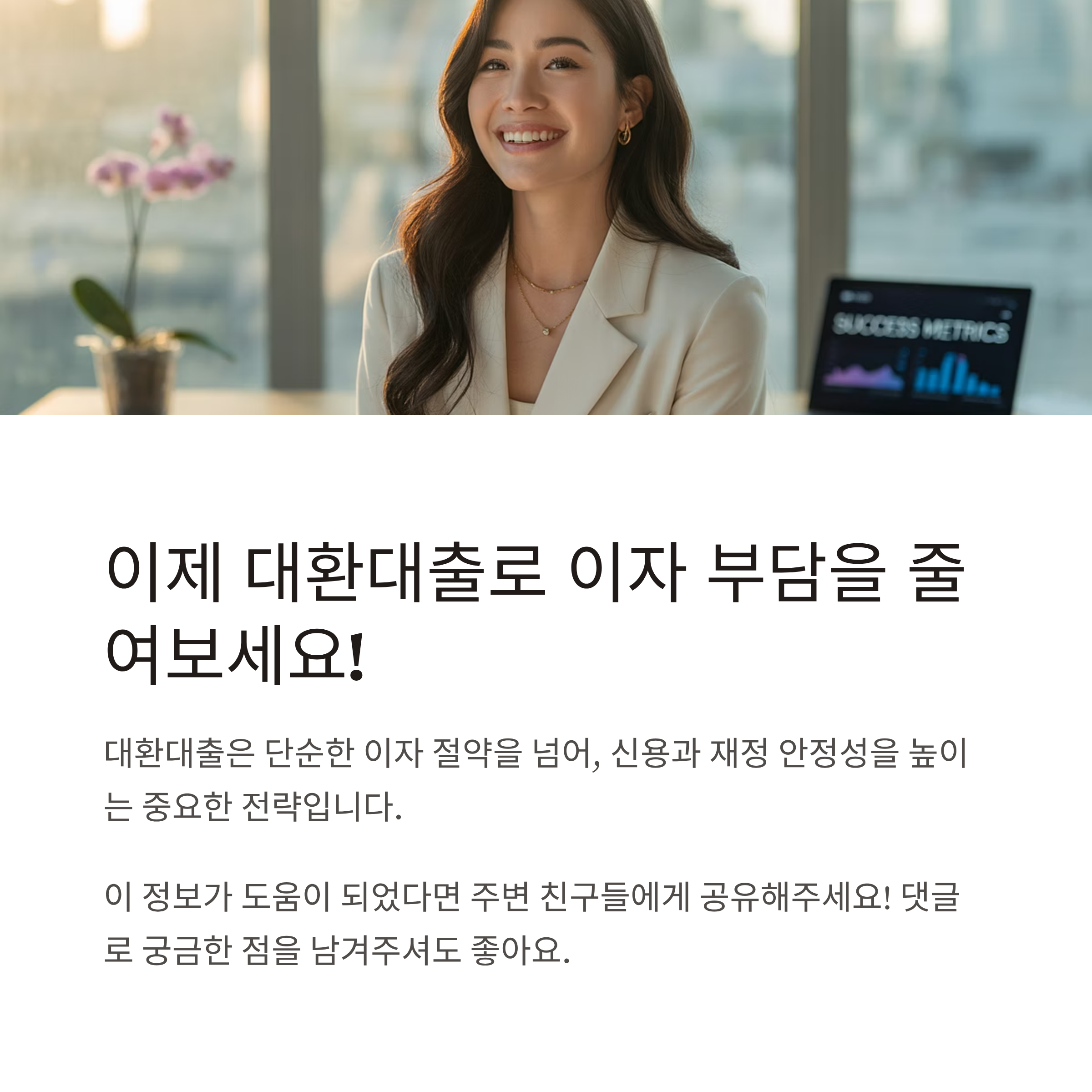 대환대출은 단순한 이자 절약을 넘어, 신용과 재정 안정성을 높이는 중요한 전략입니다.