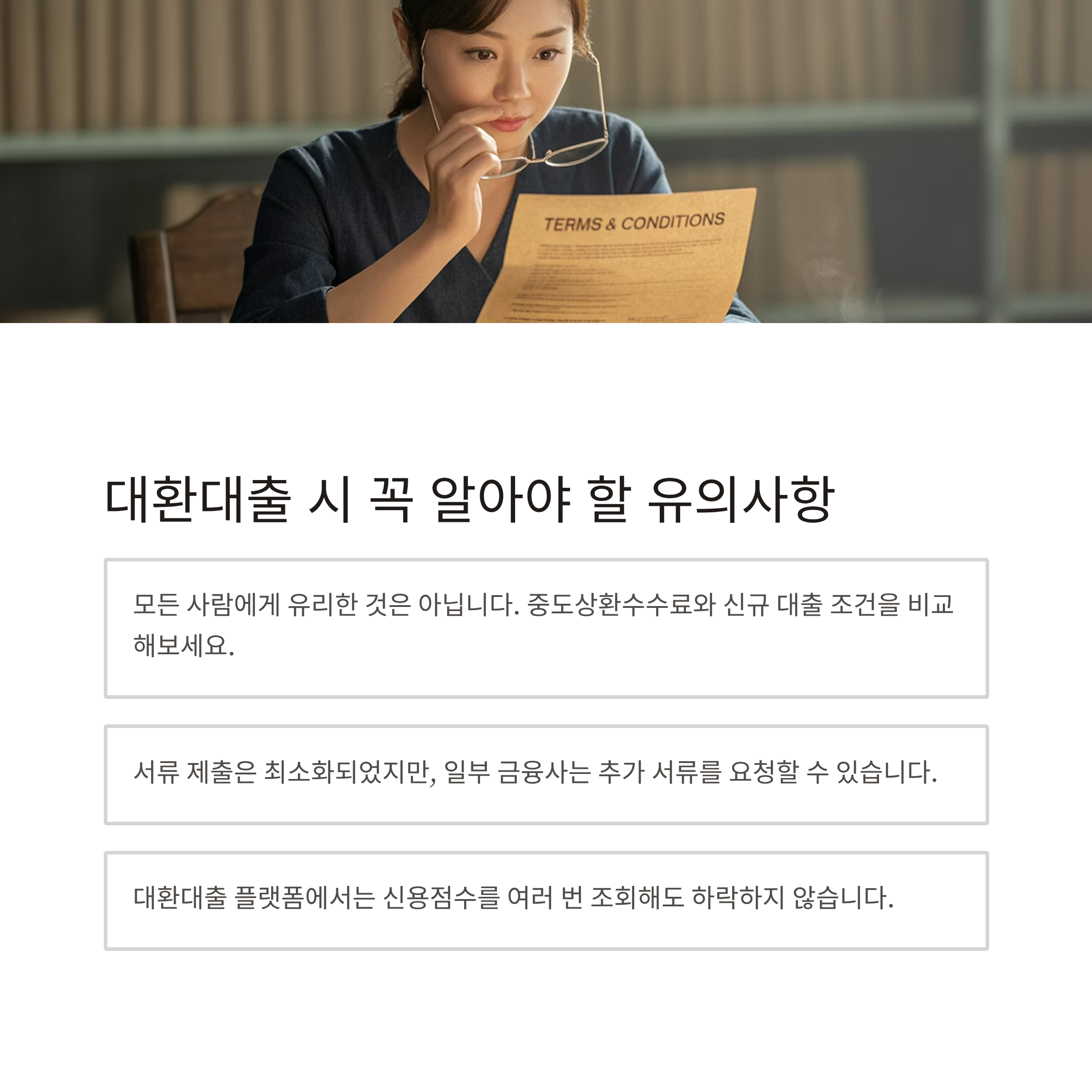 중도상환수수료와 신규 대출 조건을 따져보세요. - 서류 제출은 최소화되었지만, 일부 금융사는 요청할 수 있습니다.