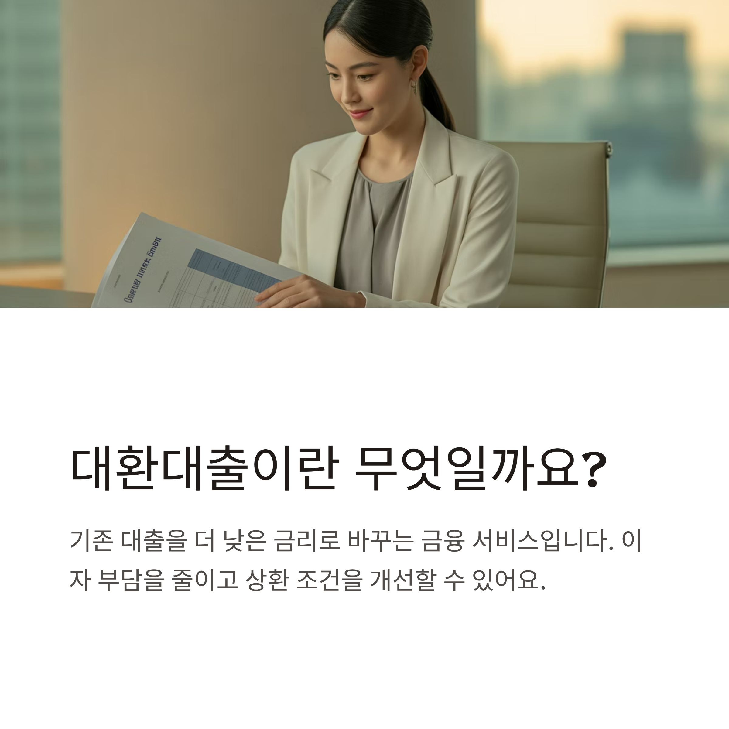 대환대출은 기존 대출을 더 낮은 금리로 바꾸는 금융 서비스입니다.