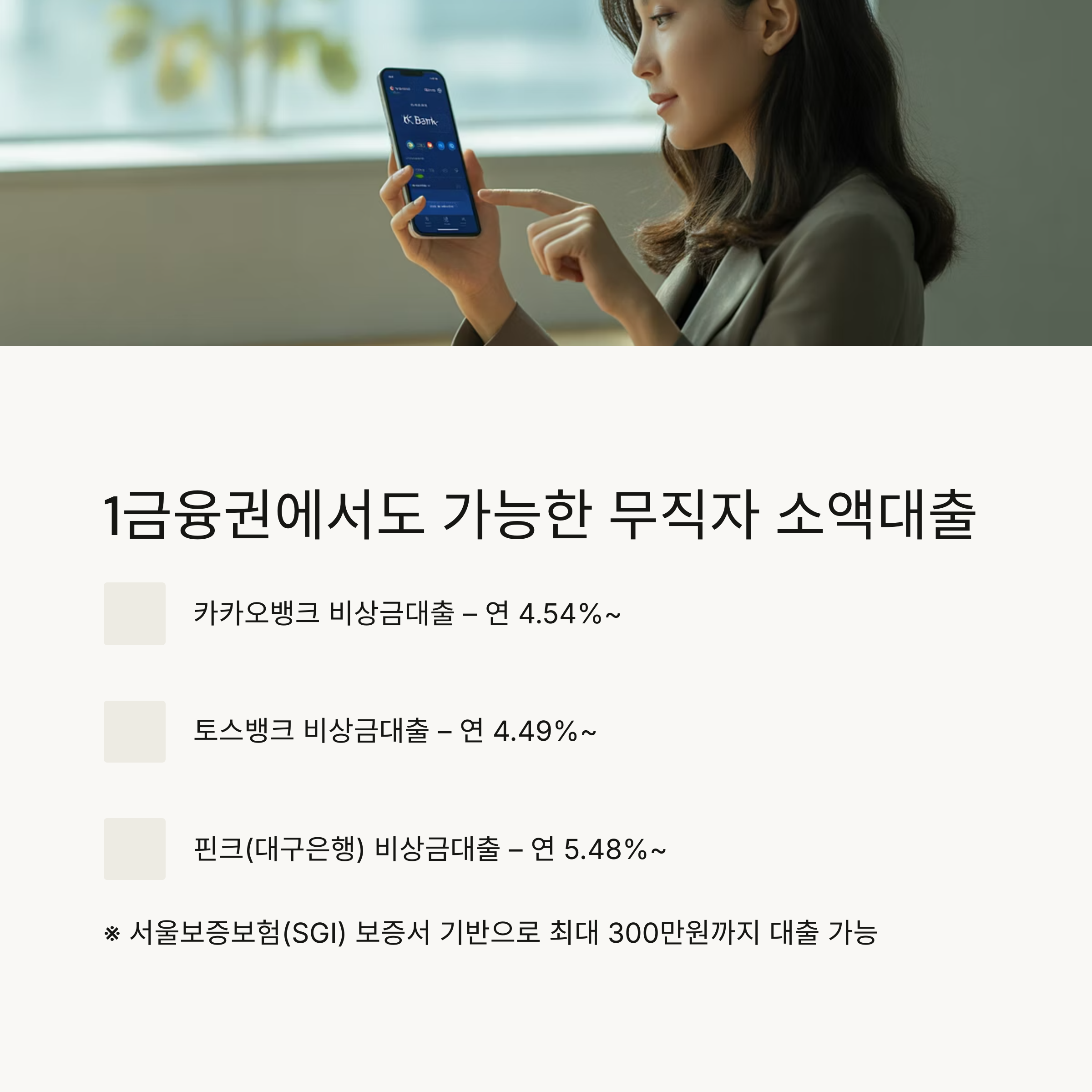 소득이 없다고 무조건 2금융권으로 가야 하는 건 아닙니다. 카카오뱅크, 토스뱅크, 핀크 같은 인터넷은행은