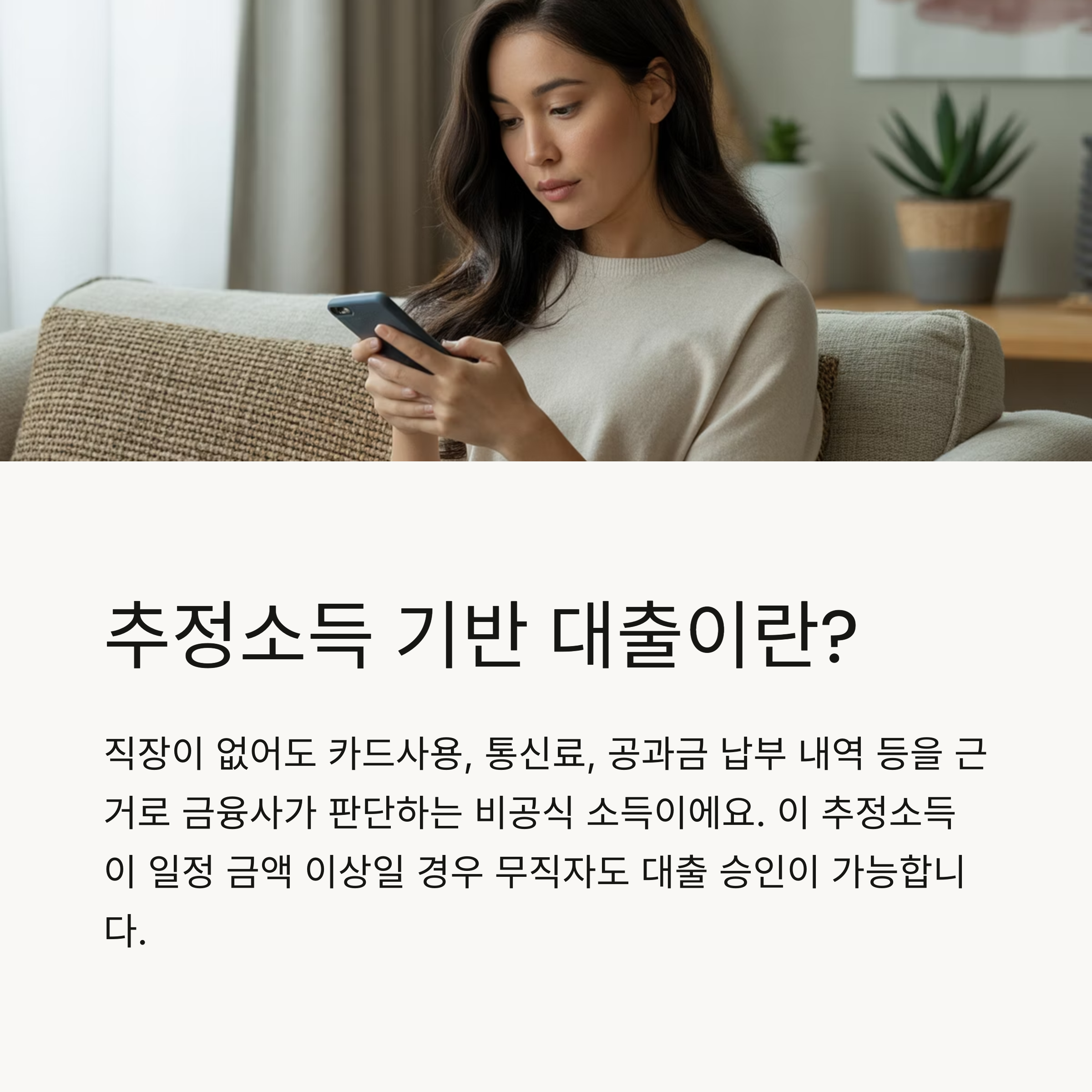 무직자라고 해도 대출이 아예 불가능한 건 아닙니다. 최근에는 추정소득 산출 또는 통신정보 기반