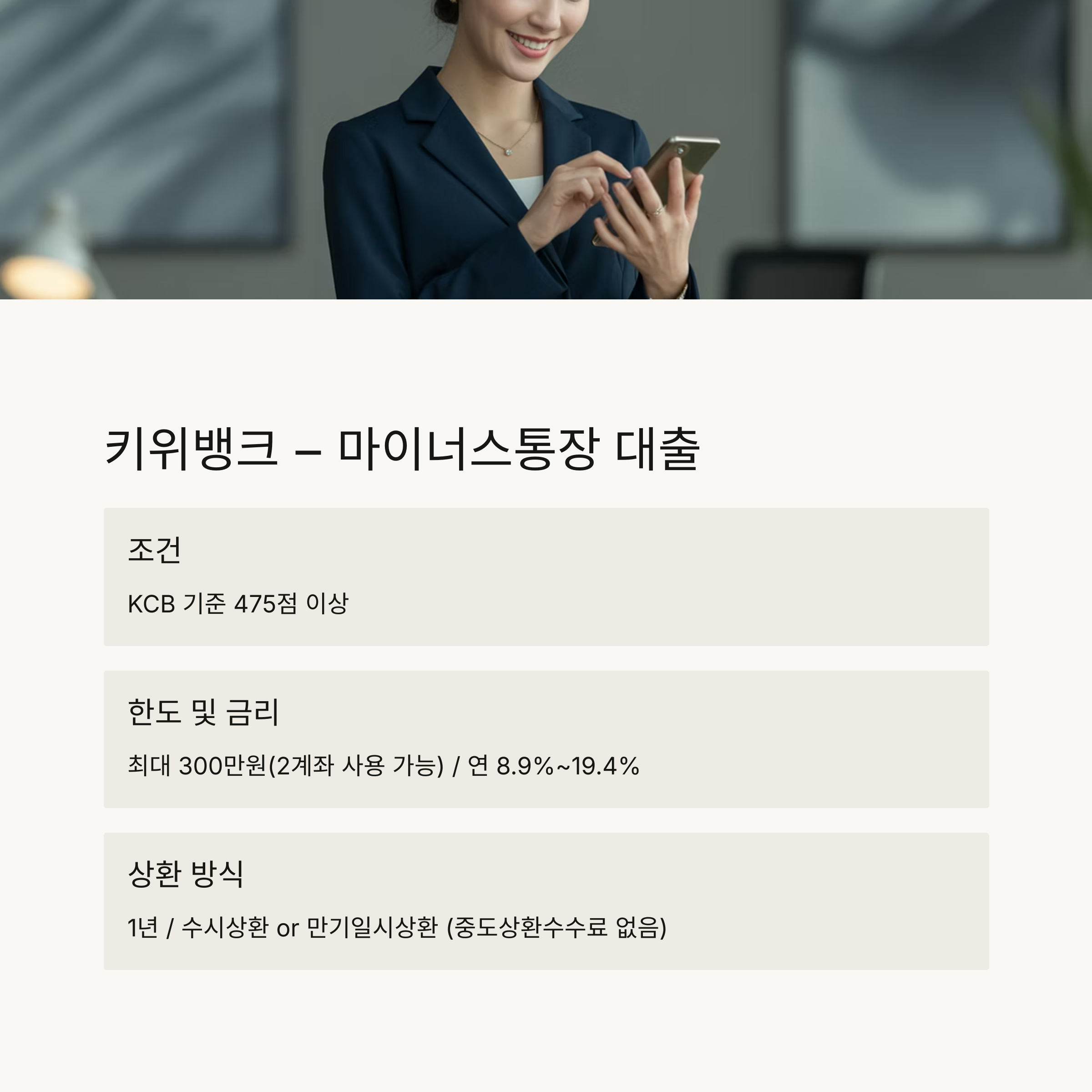 단, 신용 6등급 이하의 저신용자는 거절될 수 있어 저축은행 상품과 병행하여 비교해보는 것이 좋습니다.