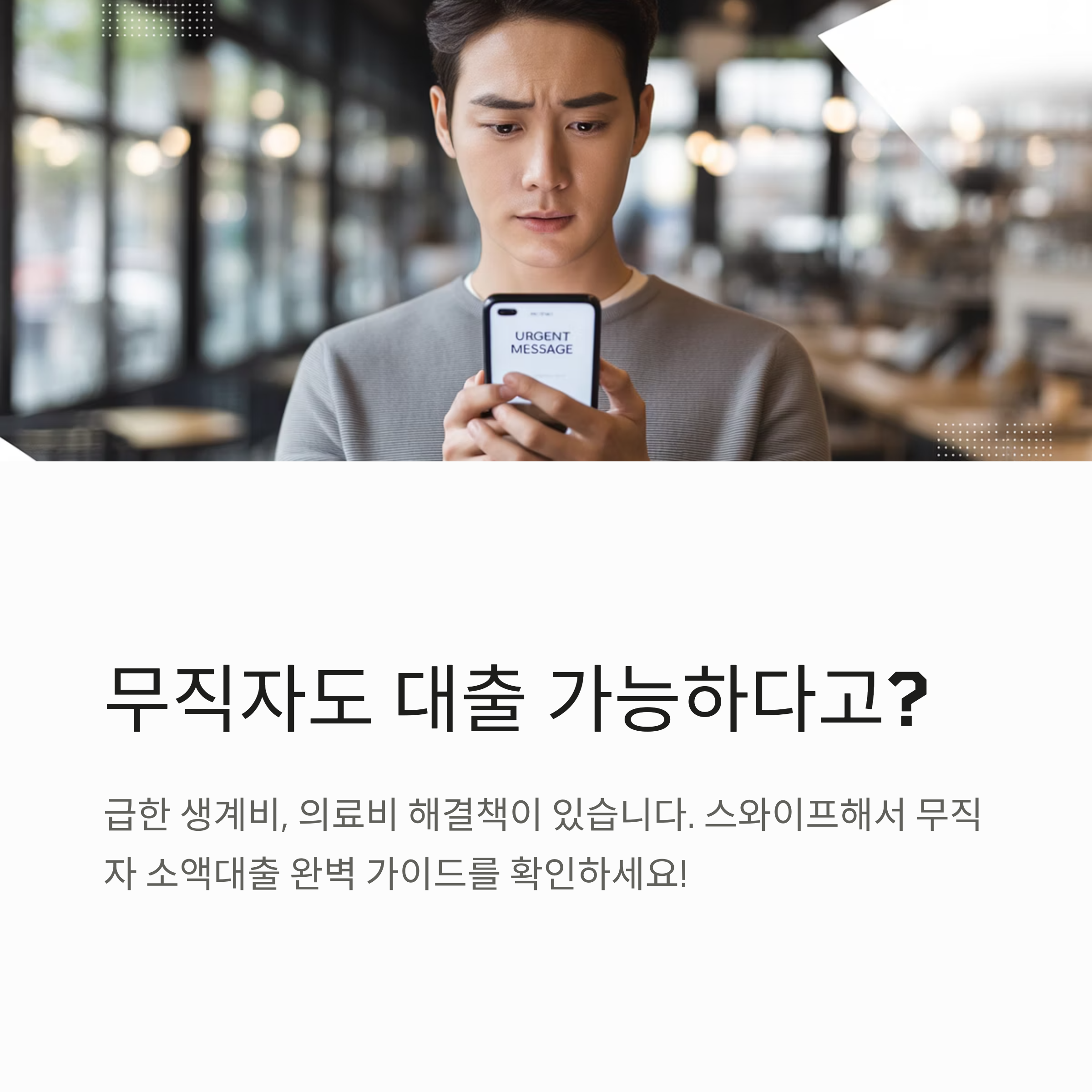 요즘같이 불안정한 경제 상황 속에서 직장이 없다고 해서 자금 마련을 포기할 순 없습니다. 무직자도 신청 가능한 소액대출이 있다는 사실, 알고 계셨나요? 갑작스러운 생계비, 병원비, 공과금 등에 대비해 활용할 수 있는 무직자 소액대출의 조건과 방법을 오늘 자세히 정리해드릴게요.
