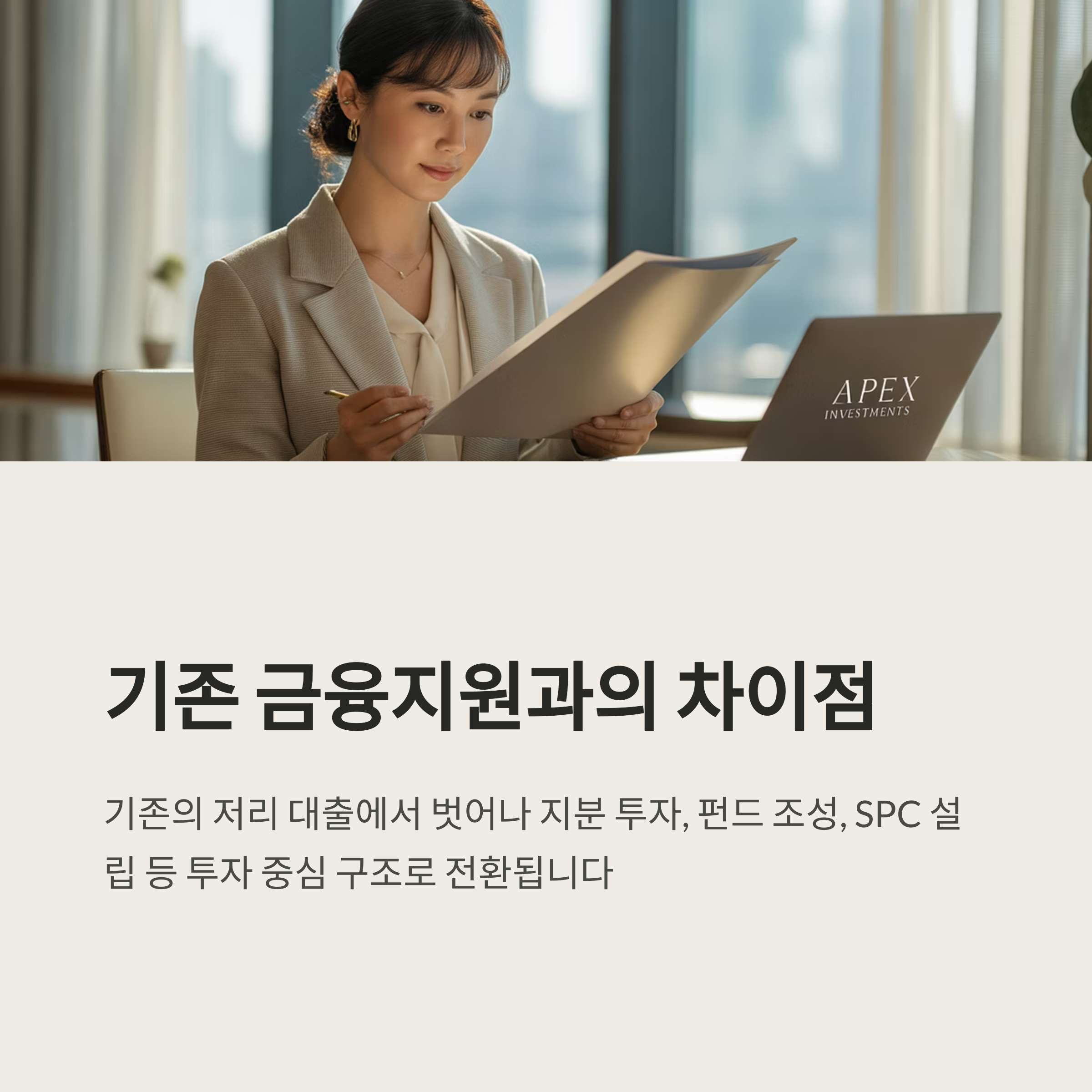 A2. 기존의 저리 대출에서 벗어나, 지분 투자, 펀드 조성, SPC 설립 등 투자 중심 구조로 바뀌었습니다.