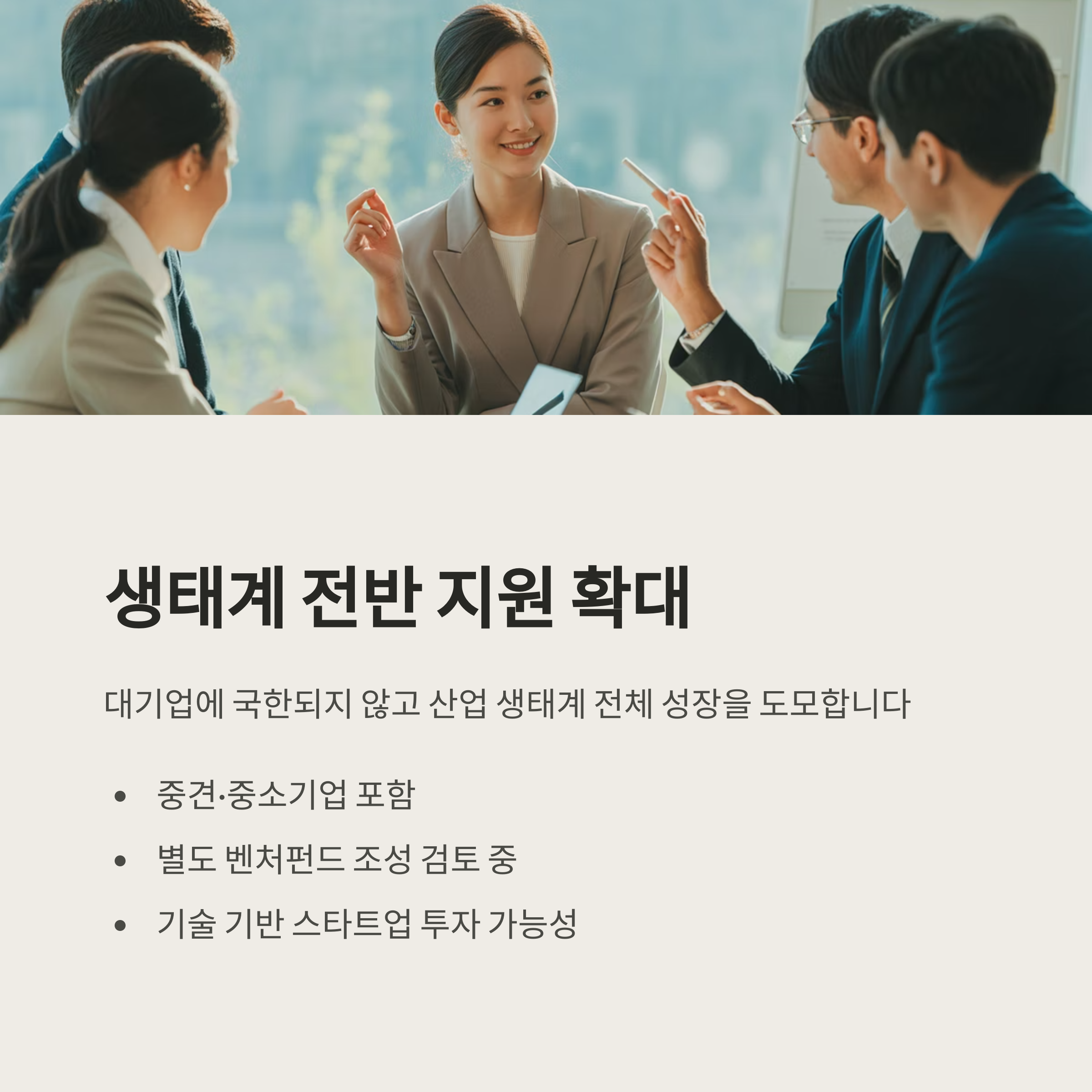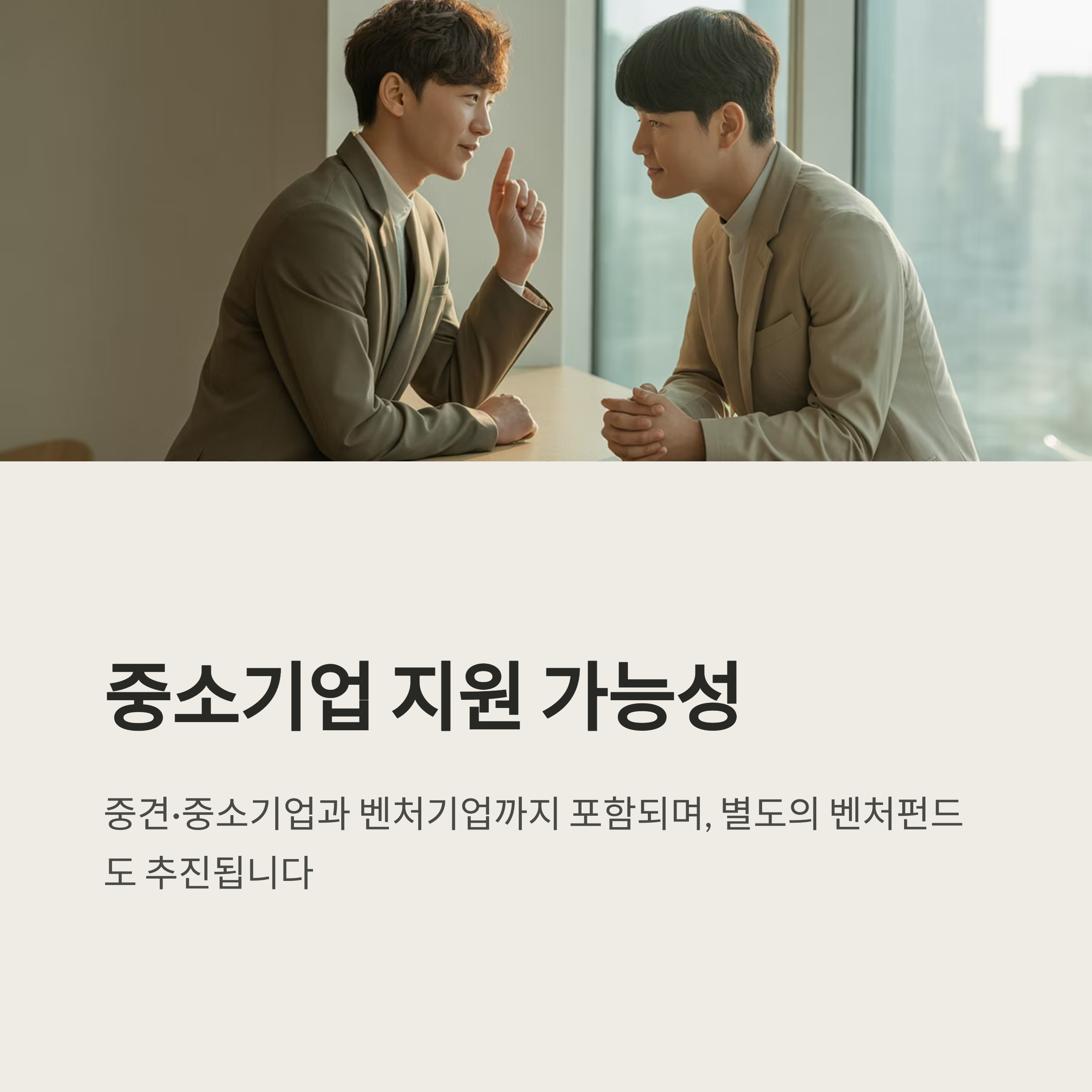 A3. 가능합니다. 중견·중소기업과 벤처기업까지 포함되며, 별도의 벤처펀드도 추진됩니다.