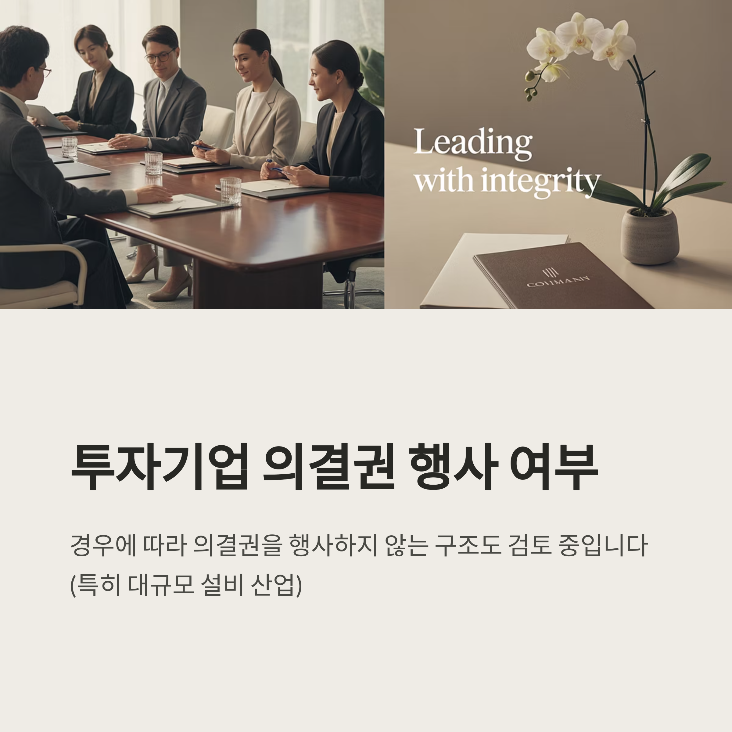 A6. 경우에 따라 의결권을 행사하지 않는 구조도 검토 중입니다. (특히 대규모 설비 산업)