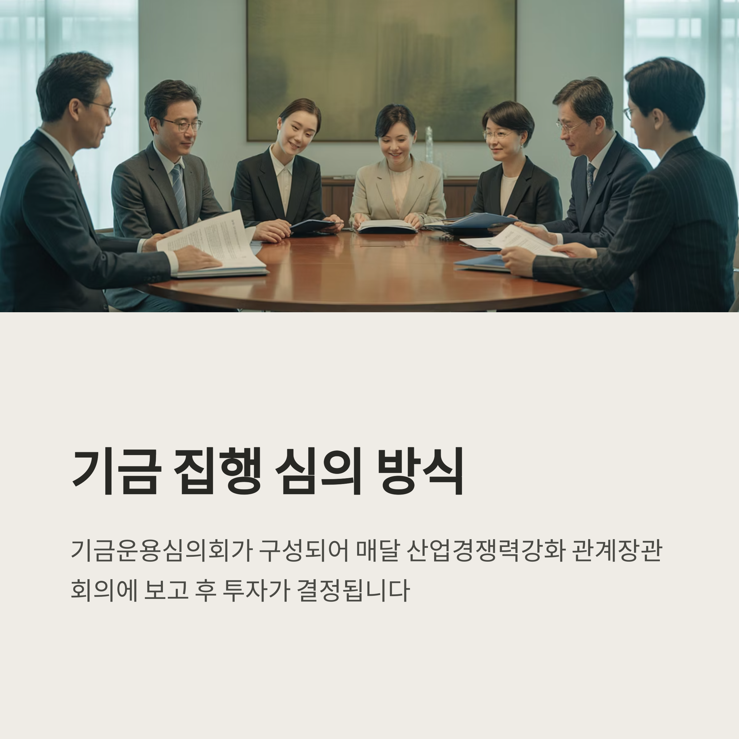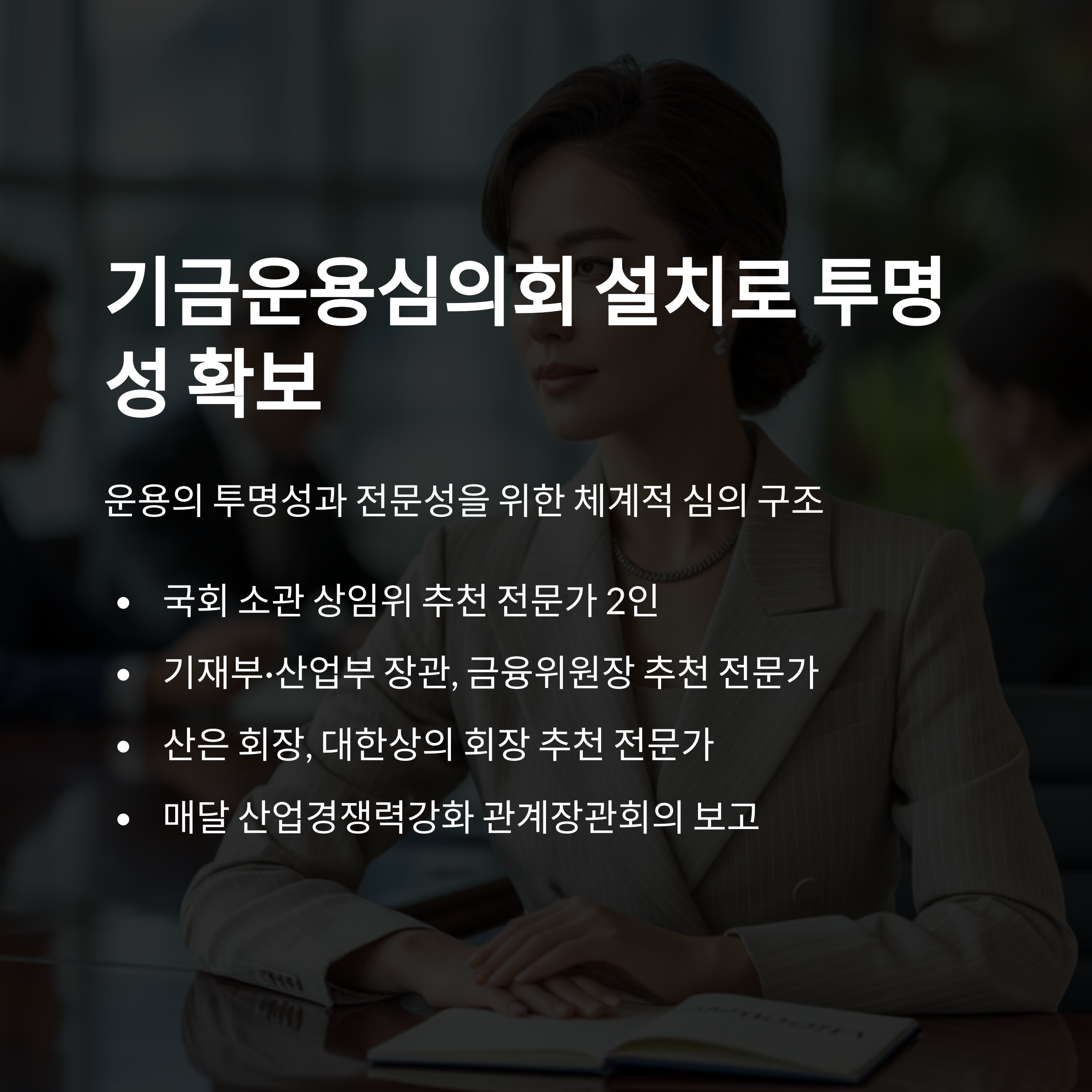 이번 기금 운용은 단기성과보다 장기 산업 경쟁력 강화를 목표로 합니다.
