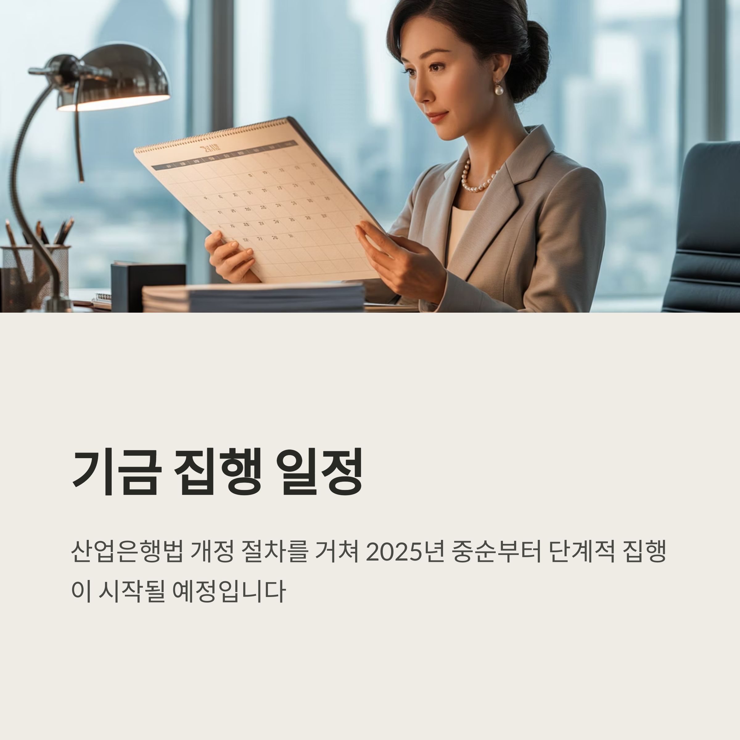 A8. 산업은행법 개정 절차를 거쳐 2025년 중순부터 단계적 집행이 시작될 예정입니다.
