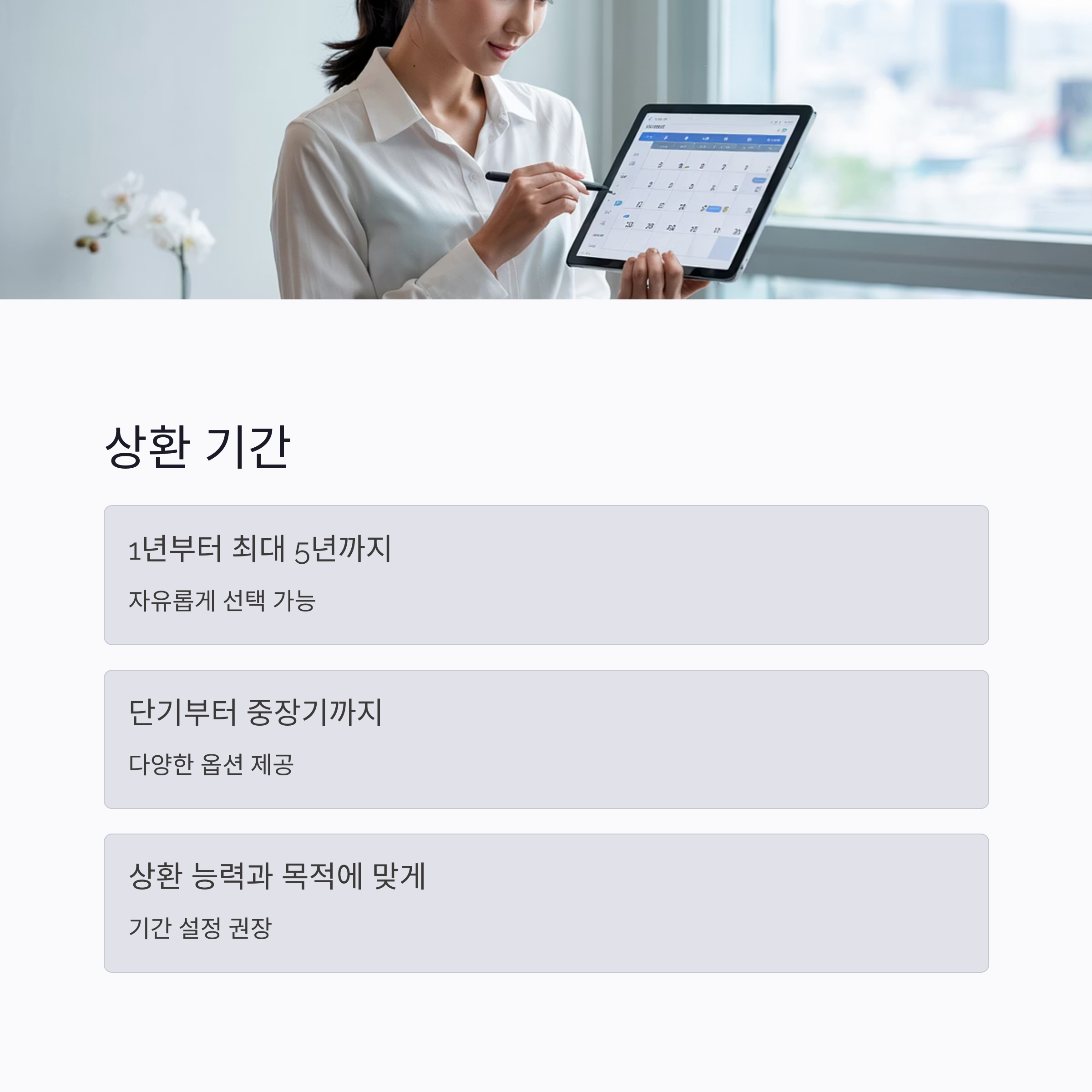 상환 기간은 고객의 상황에 따라 1년부터 최대 5년까지 자유롭게 선택할 수 있습니다.