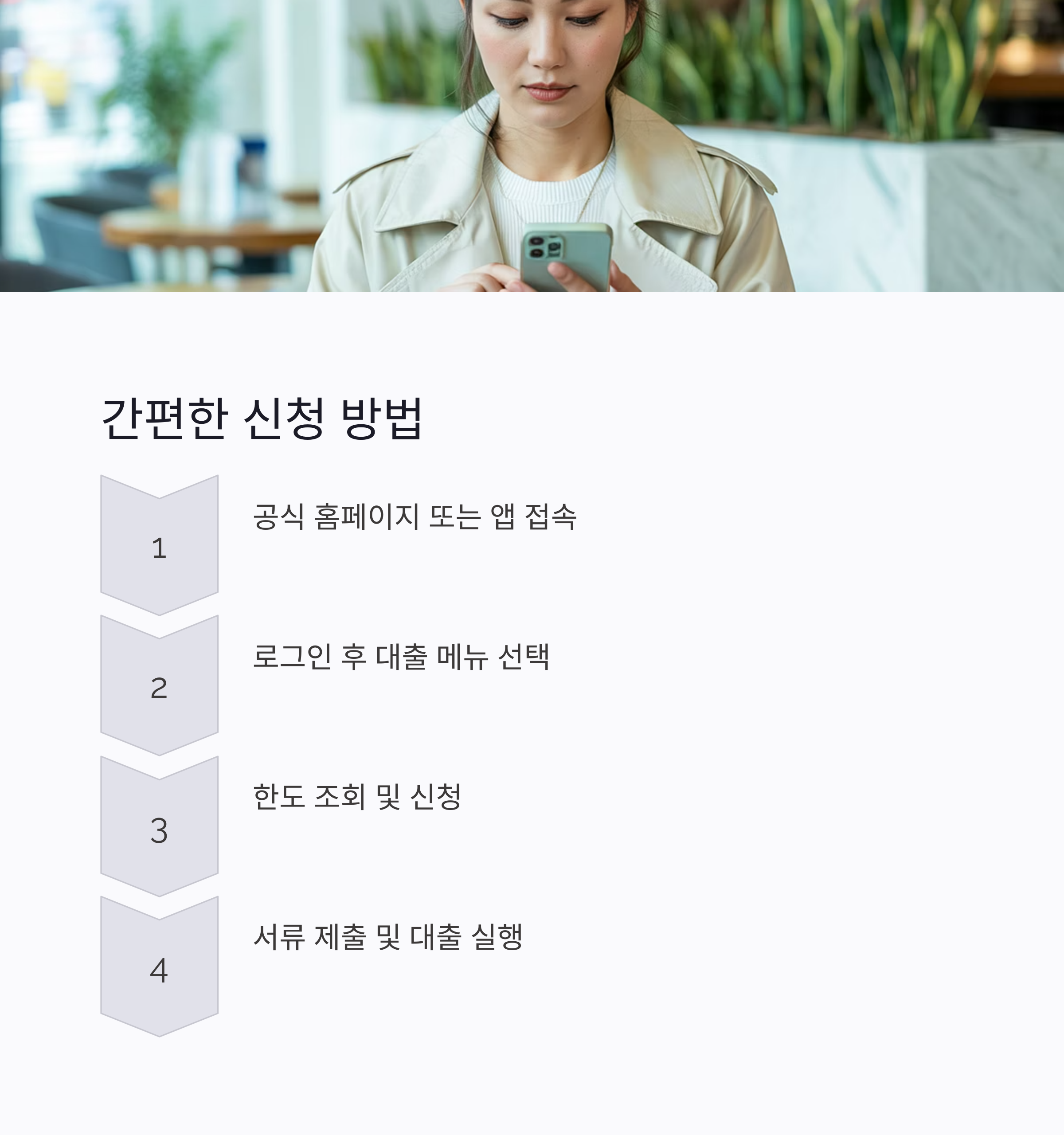 ▶ 한도 조회 → 신청 → 서류 제출 → 대출 실행