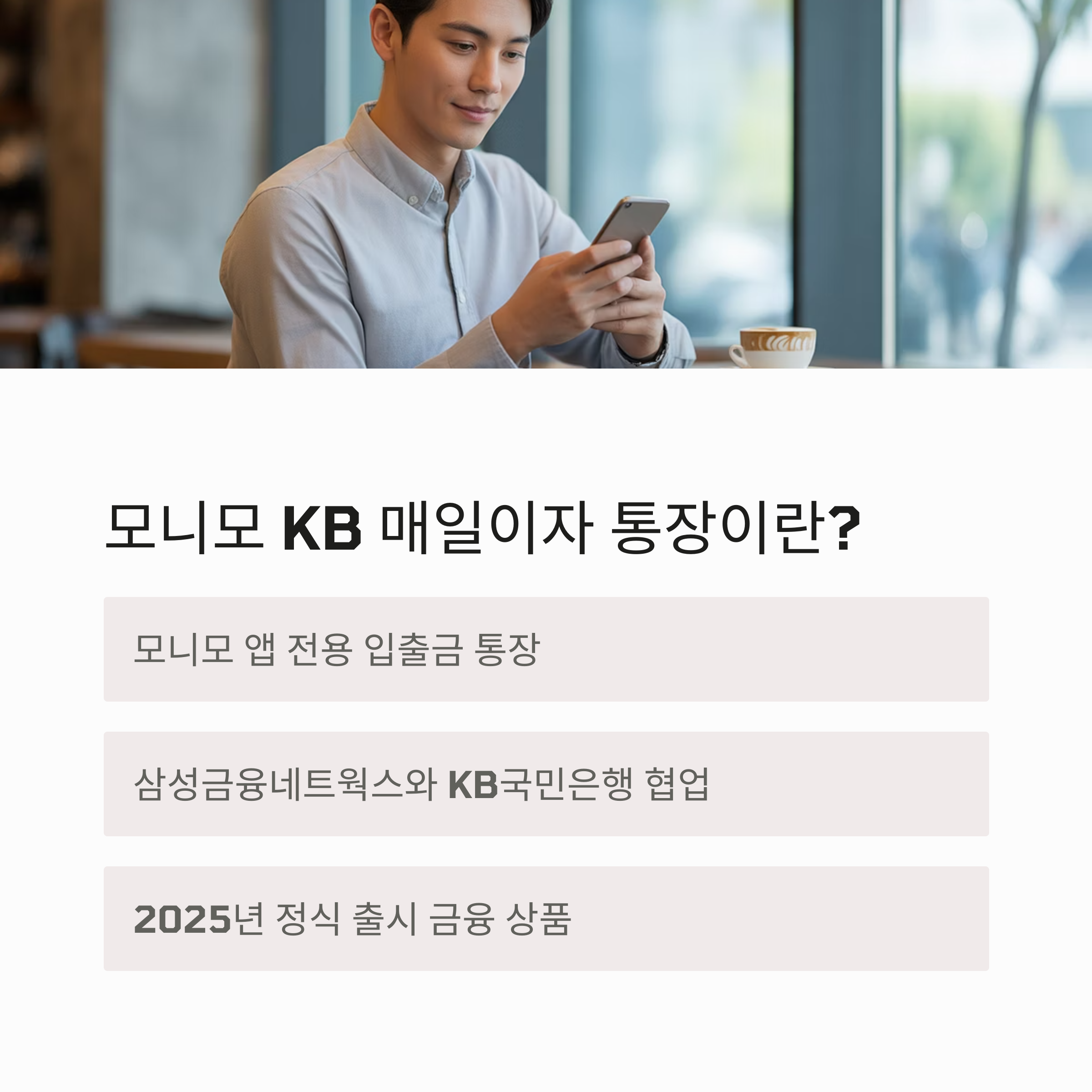 2025년 금융시장을 뜨겁게 달굴 혁신적인 입출금 통장이 등장했습니다. 바로 삼성금융과 KB국민은행이 손잡고 출시한 ‘모니모 KB 매일이자 통장’인데요. 하루만 예치해도 이자가 발생하고, 자동이체만 해도 최대 연 4.0%의 금리를 받을 수 있는 이 통장, 과연 어떤 혜택이 숨어 있을까요?
