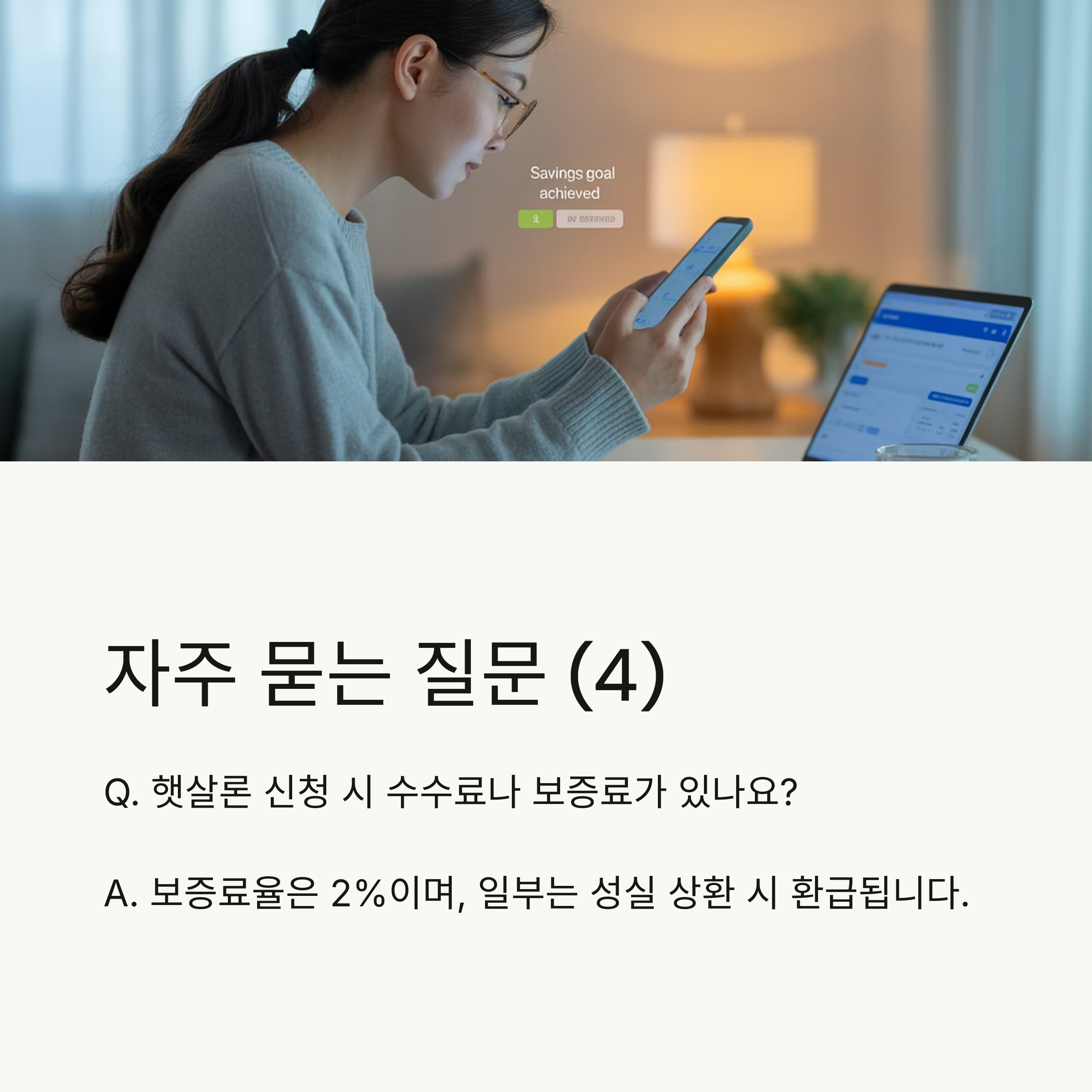 Q5. 햇살론 신청 시 수수료나 보증료가 있나요?