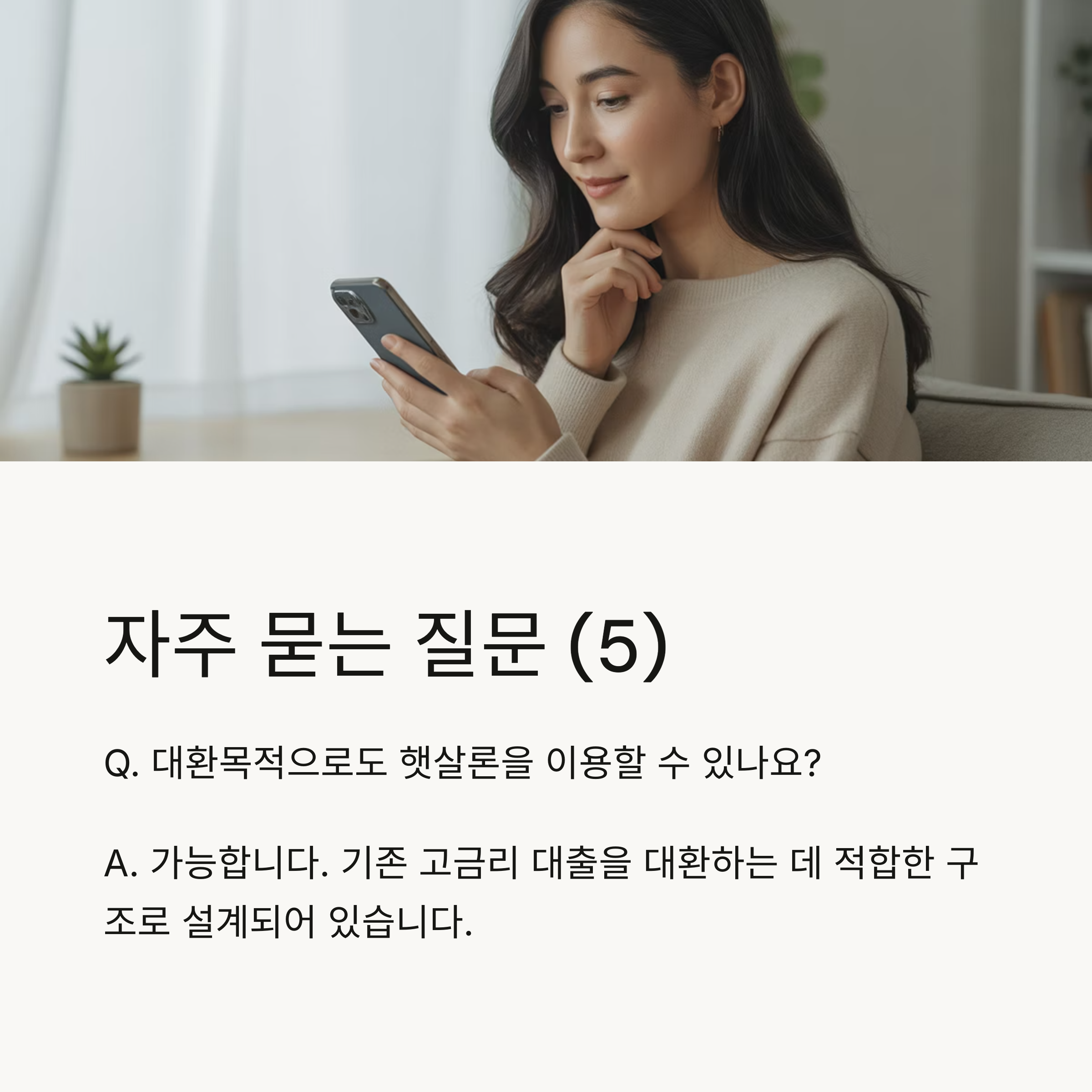 A7. 가능합니다. 기존 고금리 대출을 대환하는 데 적합한 구조로 설계되어 있습니다.