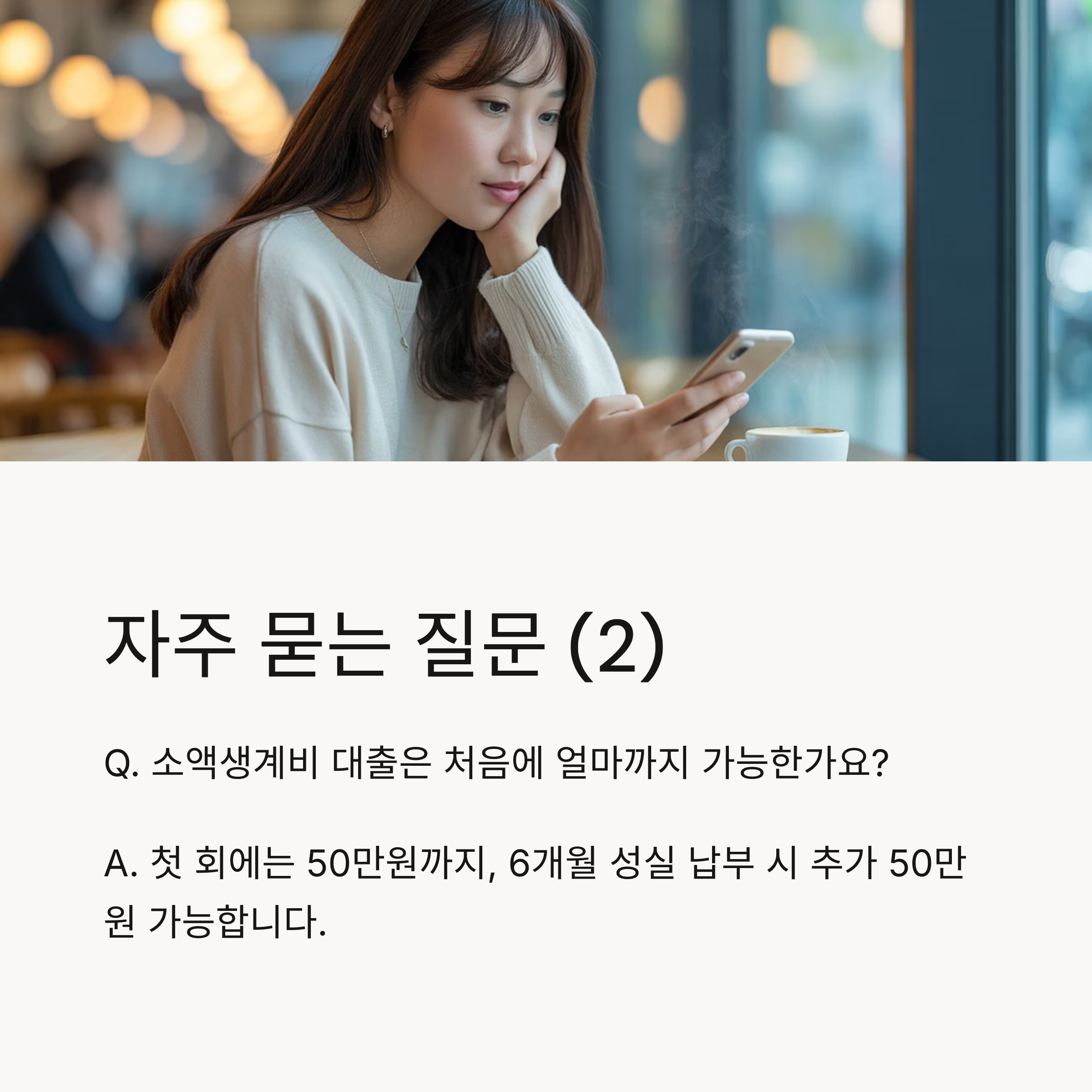 Q2. 소액생계비 대출은 처음에 얼마까지 가능한가요?