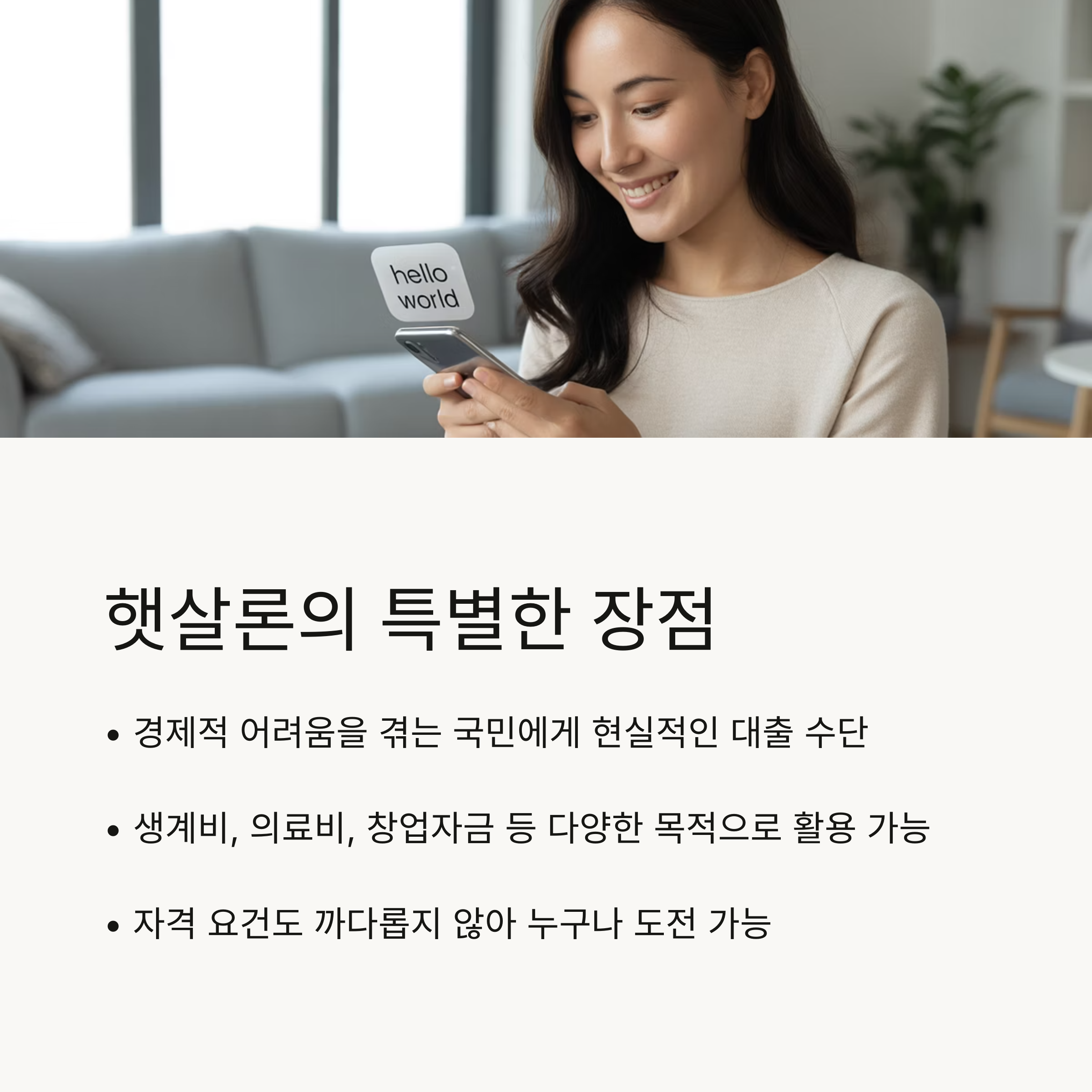 최근 출시된 햇살론 소액생계비 대출도 주목할 만합니다.