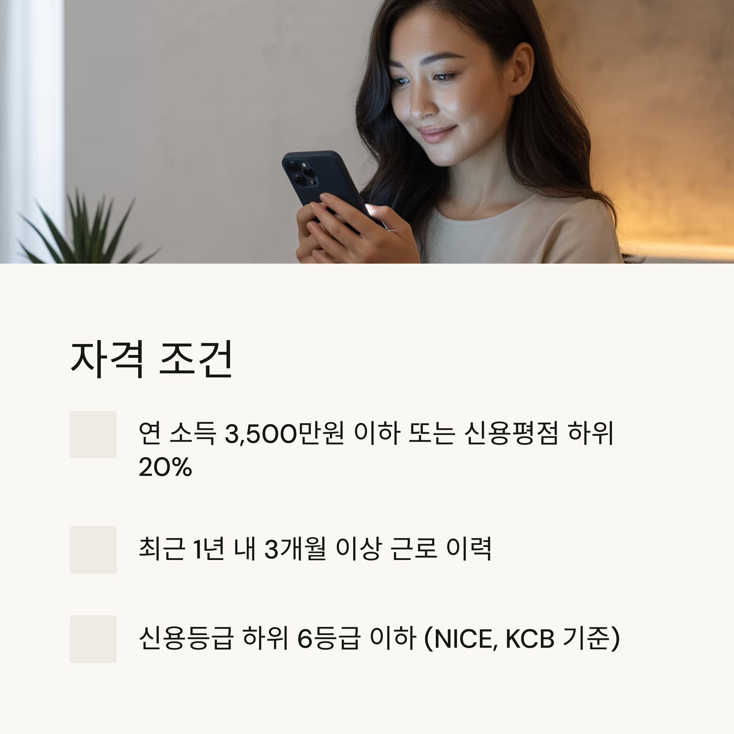 : 연 소득 3,500만원 이하 또는 신용평점 하위 20%