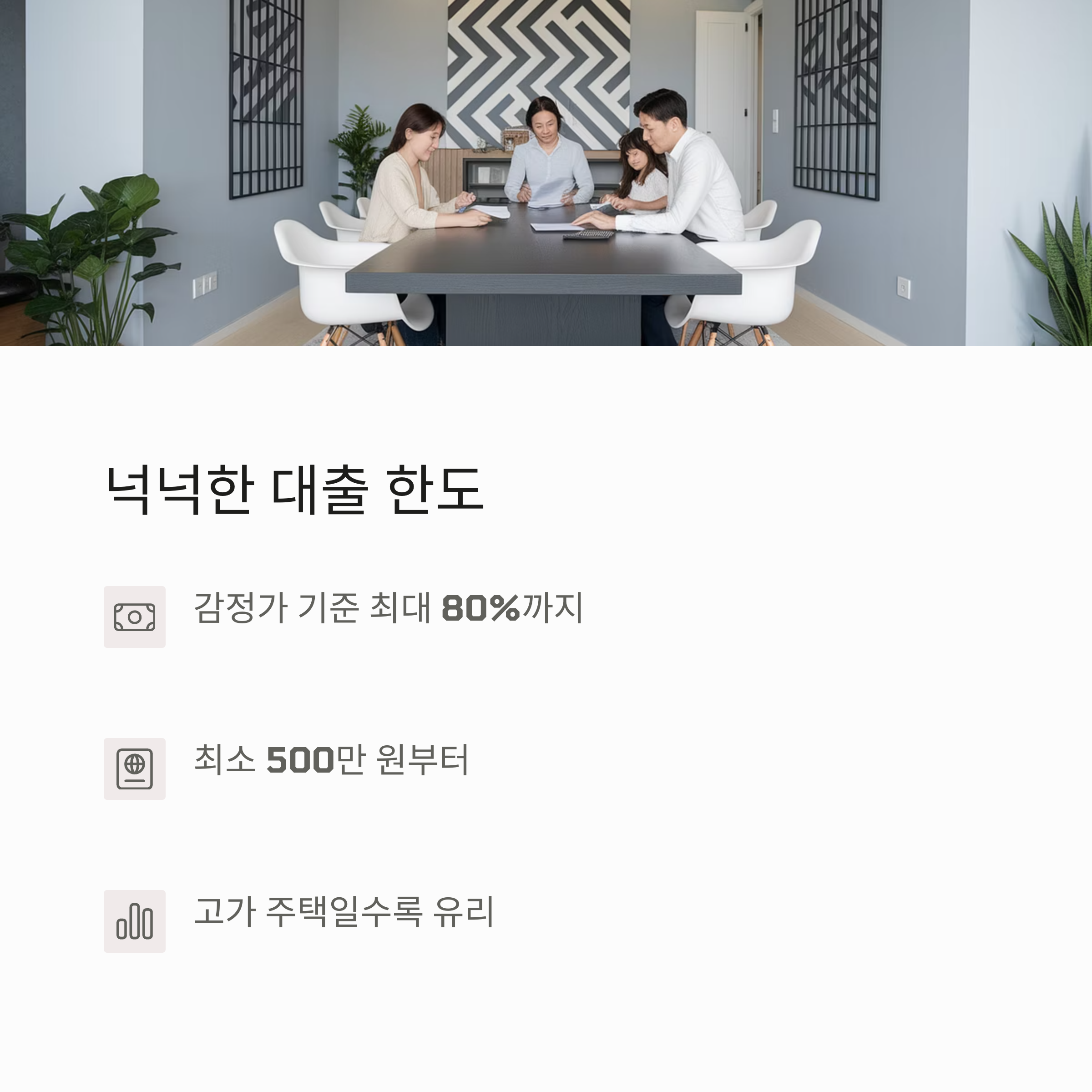 ✅ 감정가 기준으로 대출 가능 금액 유동적