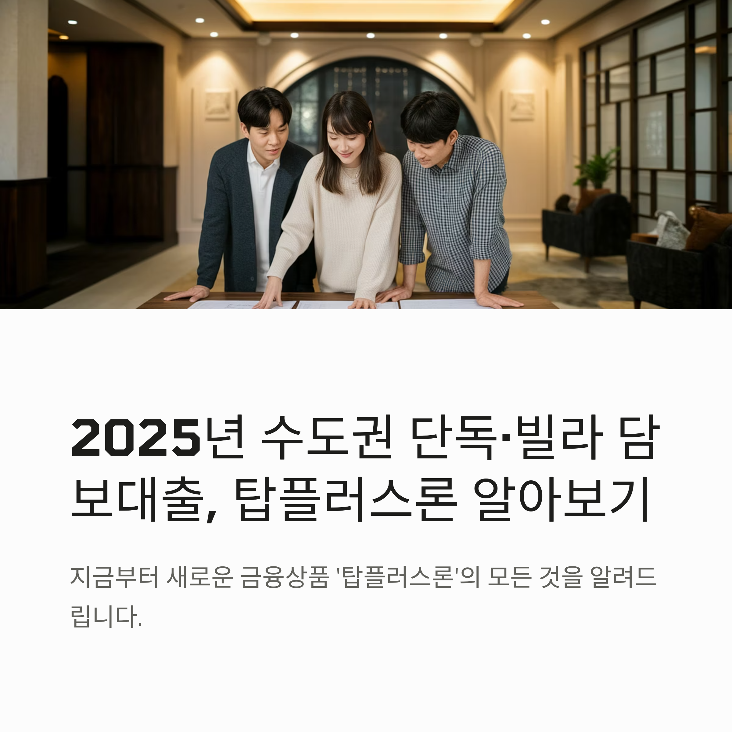 탑플러스론은 서울 및 수도권의 단독주택, 빌라, 다세대 주택 보유자를 대상으로 한 대출 상품입니다.