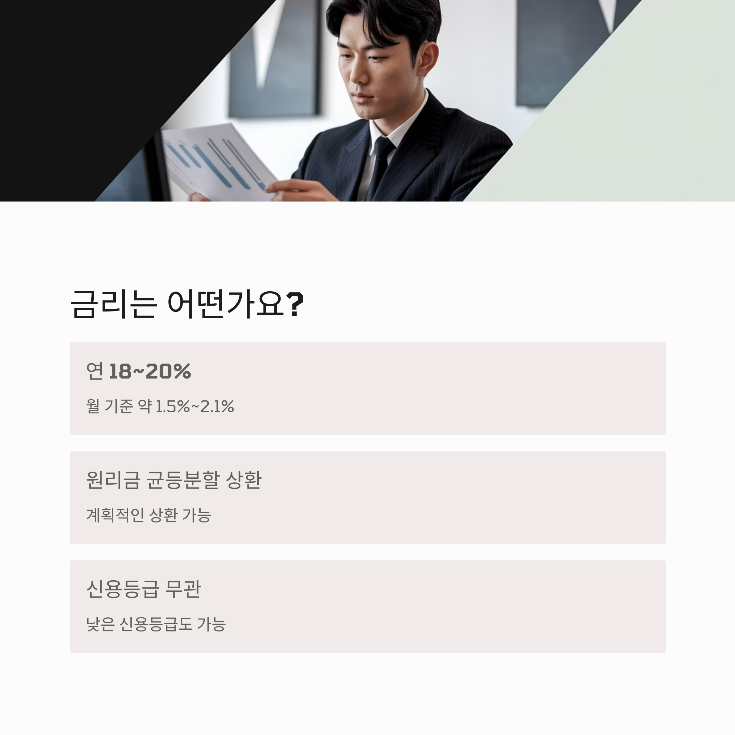 연 18~20% 수준, 금리는 어떤가요?